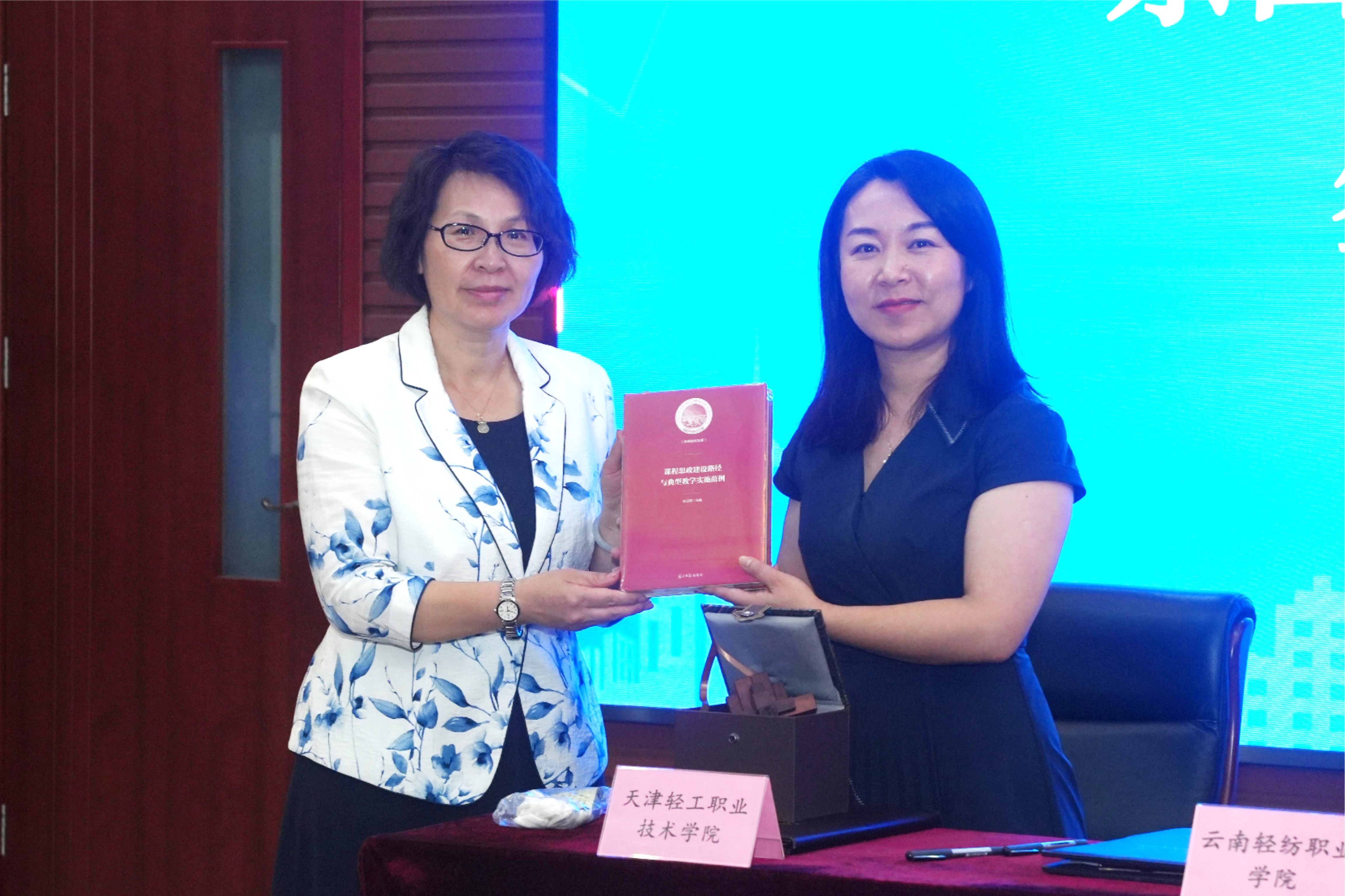 刘悦凌副院长与柏松副校长共同签署了东西部院校合作协议意向书。根据协议,双方将在高水平专业及专业群建设、“双师型”教学团队建设、高水平实训基地建设、赛项研讨及技术服务等多个领域进行深入合作,充分利用各自教育教学资源优势,携手共同谱写东西部院校合作新篇章。同时,李云梅院长向云南轻纺职业学院赠送由我院编写的课程思政专著及鲁班锁。
