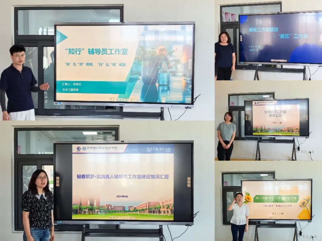 活动开始,党委学生工作部部长马延宏介绍了我院辅导员队伍建设情况,着力在培训体系、能力提升、科学考评等方面下功夫、出实招,努力打造一支高素质专业化职业化辅导员队伍,不断提升大学生思想政治教育工作质量。   本次活动共有10个辅导员工作室参与评审,“导员心事”工作室、“知行”工作室、“美艺”美育工作室、、国防教育辅导员工作室、“红色灯塔”工作室、心理减压实践项目工作室等10个工作室的汇报人紧扣辅导员日常工作范畴,以辅导员工作九大职责的内容和工作为重点方向,通过现场展演的形式从人员配备、建设内容、预期效果、建设基础、优势分析等方面进行汇报交流。