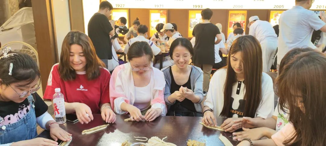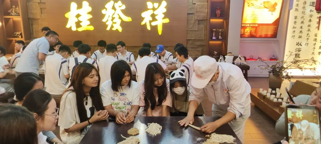随后,学院与南开中学的学生们共同参与了手工搓制麻花的互动环节,深入体验了传统技艺的魅力。同时,大家还品尝了桂发祥的新产品,使每一位参与的学生都能亲身感受到品牌的深厚传统底蕴与不懈创新的工匠精神。