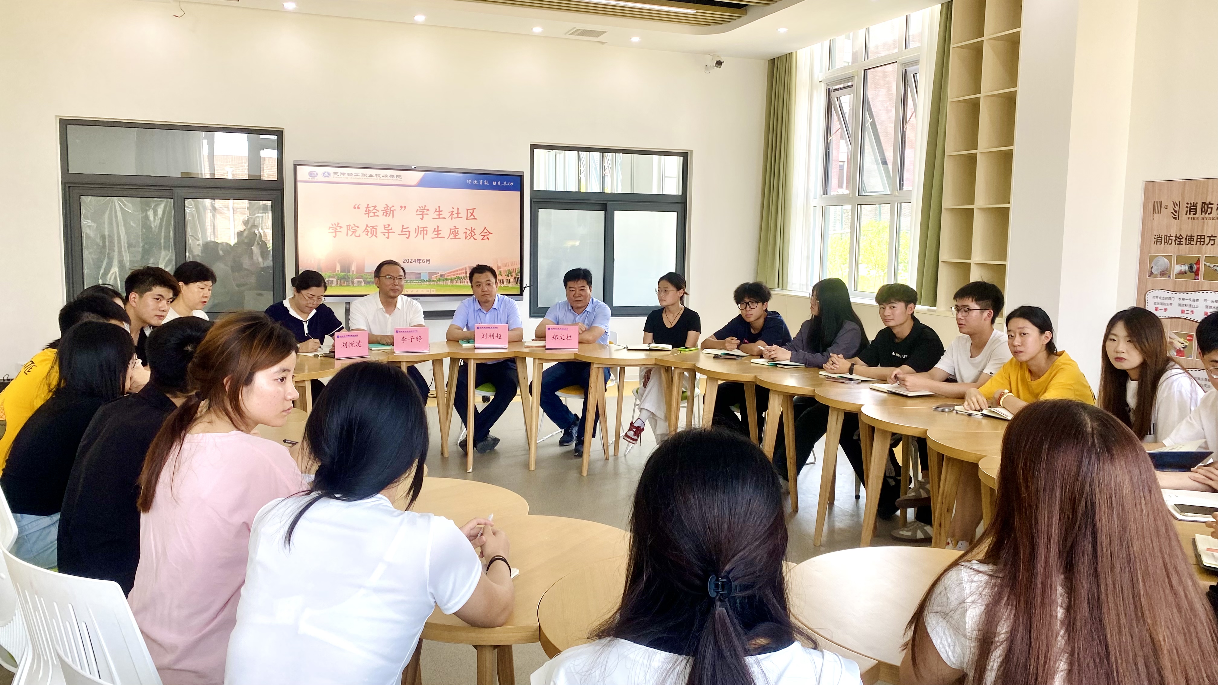 为深入学习贯彻习近平总书记视察天津重要讲话精神,贯彻天津市着力把高校“一站式”学生社区建设作为新时代高校治理体系改革的重要抓手的要求,深入推进我院“一站式”学生社区综合管理模式建设,我院依托学生社区加强师生交流,6月26日下午,学院领导走进学生社区,通过座谈会的形式在学生身边聆听学生所想所需,进一步了解学生思想动态和生活学习情况,为学生提供更有温度的服务,增强育人工作的针对性和实效性。参加本次座谈会的有学院领导以及来自各二级学院的师生代表,党委学生工作部部长马延宏主持座谈。