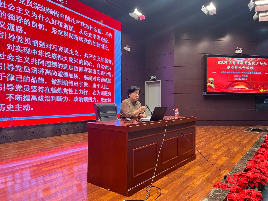 6月25日下午,新利18平台2024年天津市教育系统夕阳红报告团党史学习教育宣讲活动在我院多功能报告厅举行。天津市教育系统夕阳红报告团成员、天津理工大学关心下一代工作委员会副主任、“老马思政工作室”负责人马红健应邀到我院宣讲。会议由党委学生工作部部长马延宏主持,我院两百余名师生代表到场听取讲座。