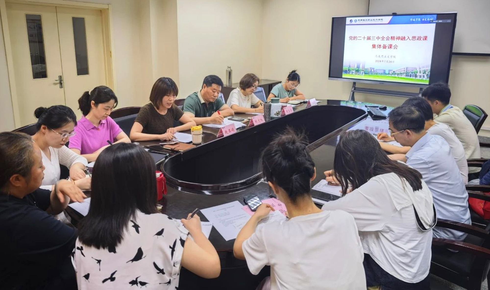 会议伊始,赵亚娟传达了天津市教育两委举办的“党的二十届三中全会精神融入思政课工作交流会”的会议精神。会议指出,思政课教师作为传播党的理论的重要力量,应深入学习贯彻全会精神,通过召开集体备课、开展大中小思政课一体化建设将全会精神融入思政课,强调在教学中要注重系统性和联系性,避免生硬植入,实现自然融入。   接下来,教研室主任和参会教师分别从课程建设和教育教学工作中如何融入党的二十届三中全会精神进行了交流和研讨。