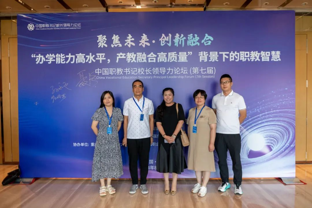 8月8日—9日,学院副院长刘悦凌带队一行五人参加在重庆召开的第七届中国职教书记校长领导力论坛。本次论坛由中国高等教育学会职业技术教育分会指导,尚强智慧教育研究院主办,重庆电子科技职业大学协办。来自全国22个省、百所职业院校、103位书记/校长,合计200余人参会。     论坛以“聚焦未来|创新融合:‘办学能力高水平,产教融合高质量’背景下的职教智慧”为主题,深入解析国家职业教育政策,分享职业院校在探索高水平办学与高质量产教融合过程中的先进经验与智慧。