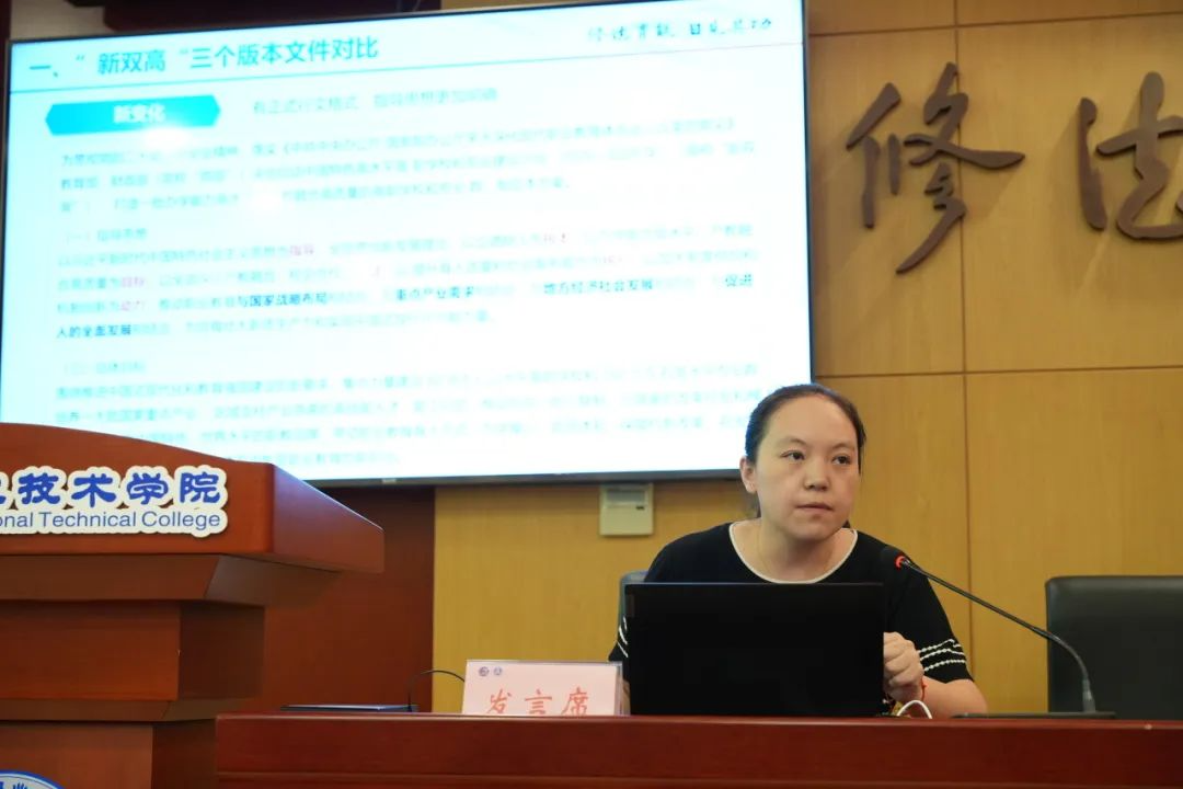 学院质量管理中心副主任霍琳从指导思想、总体目标、工作原则、布局体系、建设任务、遴选方式及评价过程等方面系统解读了“新双高”建设文件。为统筹推进教育科技人才一体化建设、围绕社会需求调整专业课程设置、深化教育教学改革奠定坚实的基础。