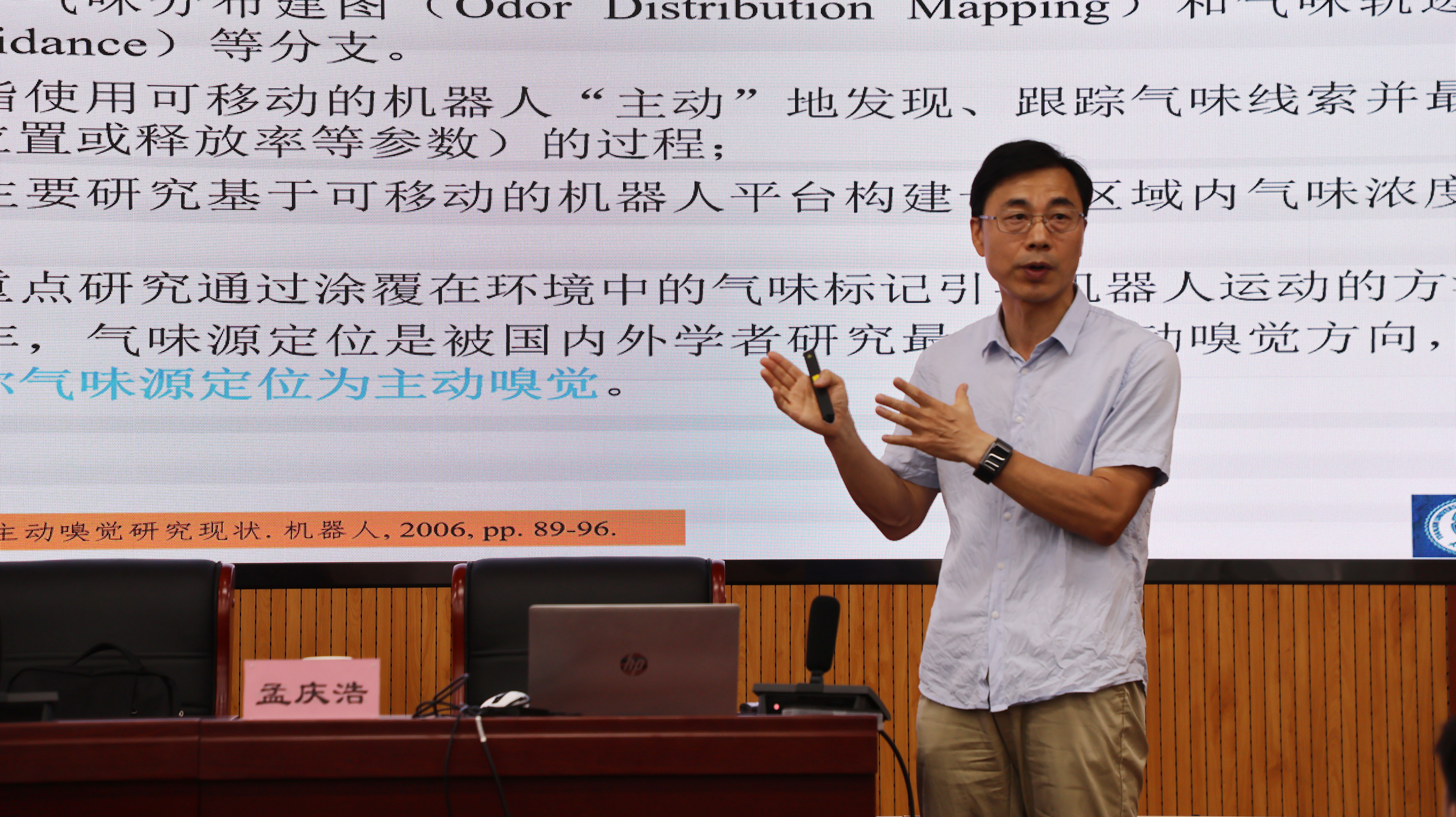 孟庆浩教授主要研究领域为机器人嗅觉、嗅/触觉情感计算、水下机器人系统、数字嗅觉等。本次学术报告主题为“浅谈机器人嗅觉技术”,全面介绍了机器人嗅觉技术的相关理论及其实际应用场景。采用视频展示的形式对科研团队的研究成果进行分享,并对机器人嗅觉技术的未来发展趋势进行展望。