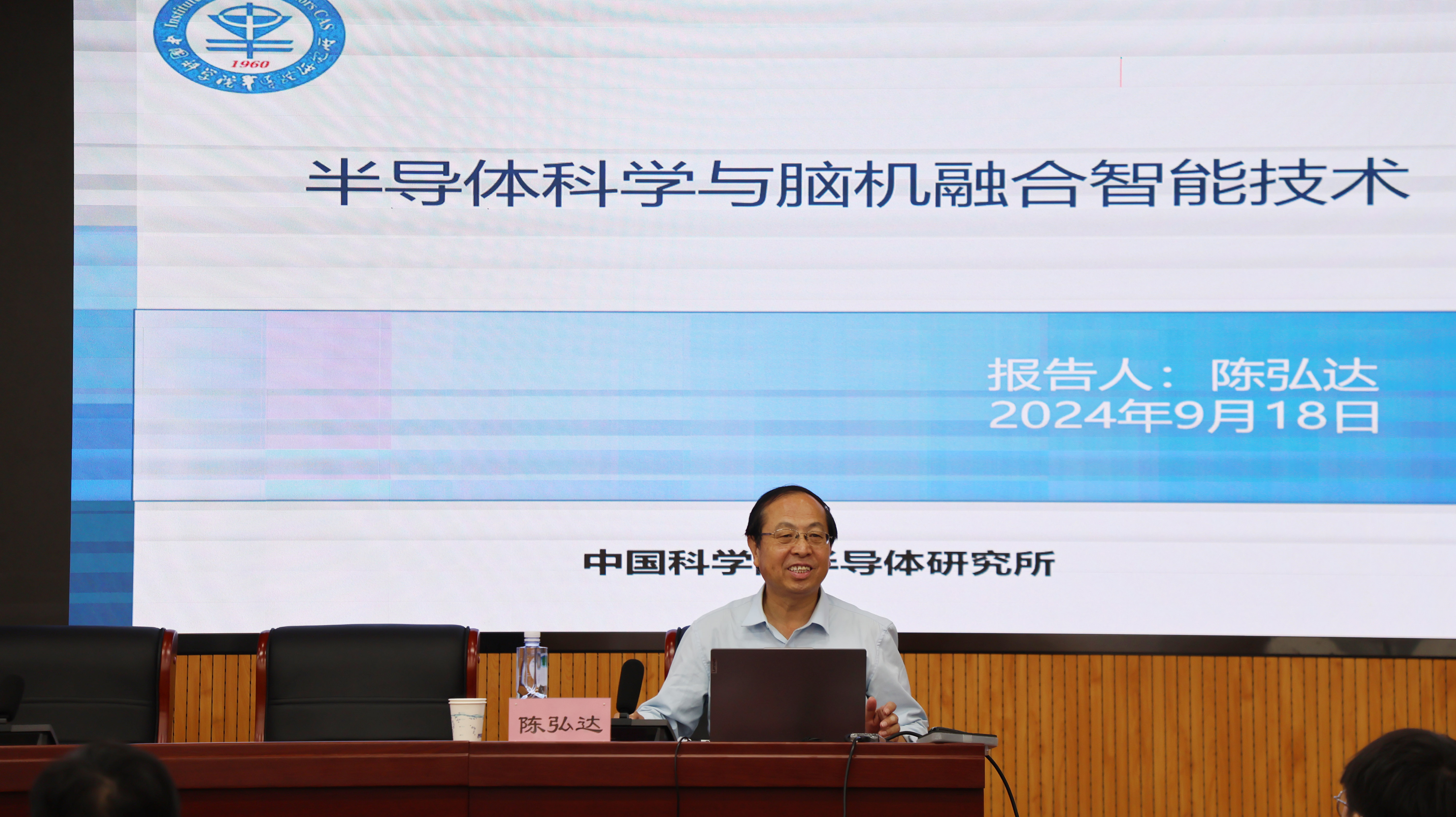 陈弘达教授长期从事新材料、微电子与光电子学方面的科研工作,目前研究方向为微电子与光电子学集成器件、集成电路与系统。本次学术报告主题为“半导体科学与脑机融合智能技术”,介绍半导体科学技术的发展历程以及其在信息化、新能源、生命健康领域对人类的贡献,介绍半导体科学技术与人类智能融合发展新技术—脑机融合技术,并对半导体科学技术和脑机融合智能技术的发展给出展望。