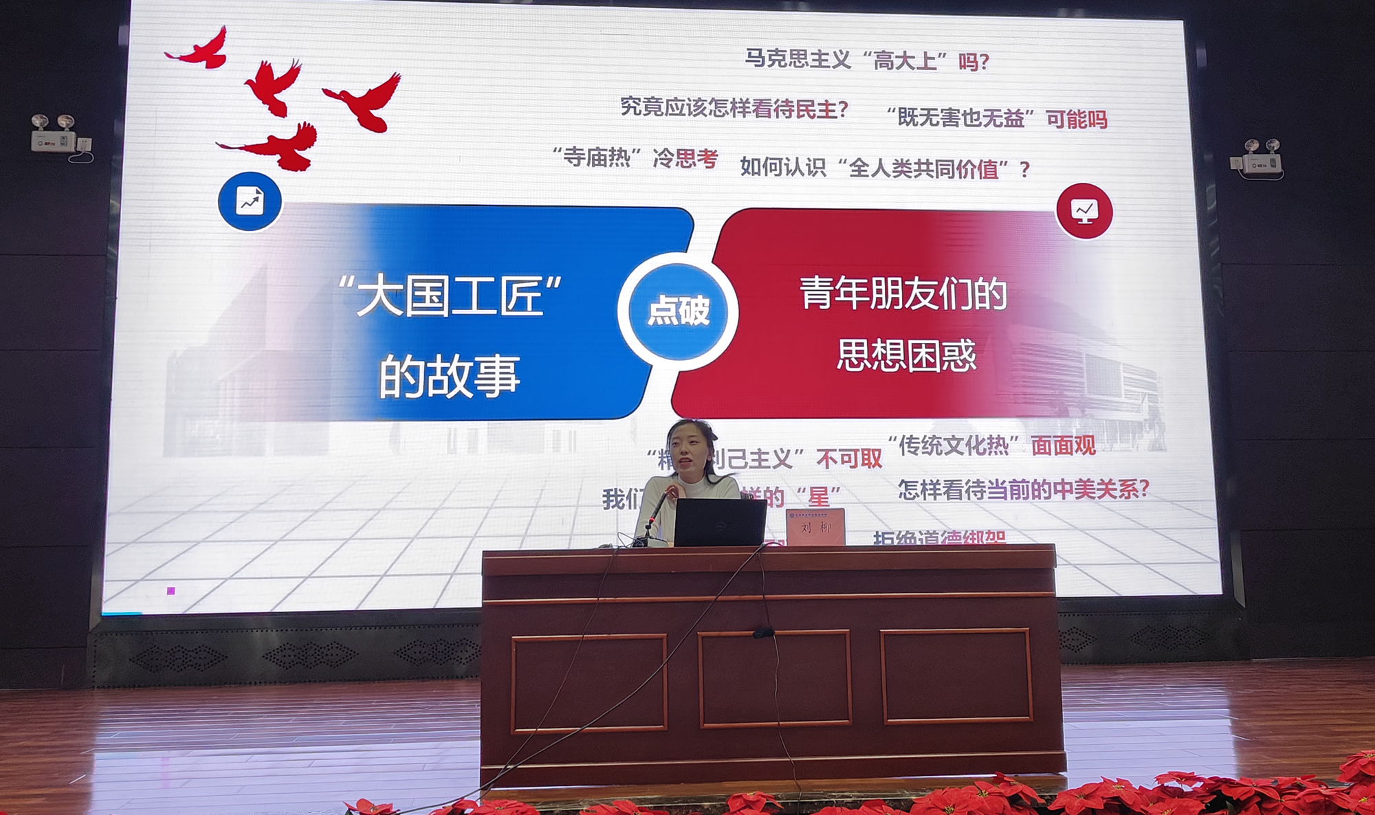 刘老师的巡讲深入浅出、清晰透彻,通过不同时代我国“大国工匠”的典型事迹、奋斗历程破解当前学生迷茫困惑的问题。论述工匠精神对中国式现代化发展的重要意义,并围绕热爱伟大祖国、担当时代责任、担当时代责任、勇于砥砺奋斗、练就过硬本领、锤炼品德修为六个方面引导鼓励广大大学生传承弘扬工匠精神,努力成为德智体美劳全面发展的栋梁之才。