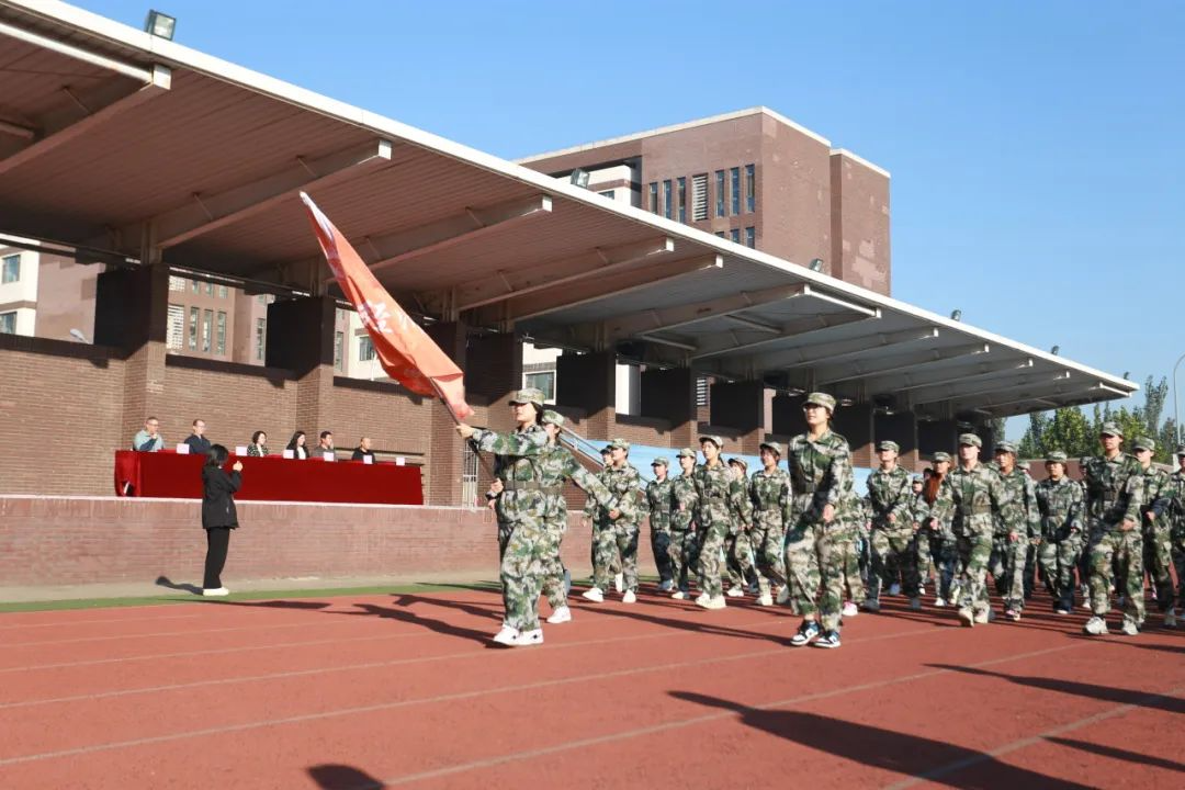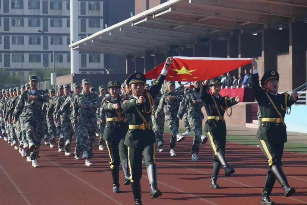 在升旗仪式后,各二级学院代表连队迈着整齐的步伐,喊着响亮的口号,依次走过主席台。他们精神抖擞,步伐坚定,展现出了新时代青年的蓬勃朝气和顽强斗志。队列动作整齐划一,军体拳虎虎生威,充分展示了同学们在军训期间的丰硕成果。