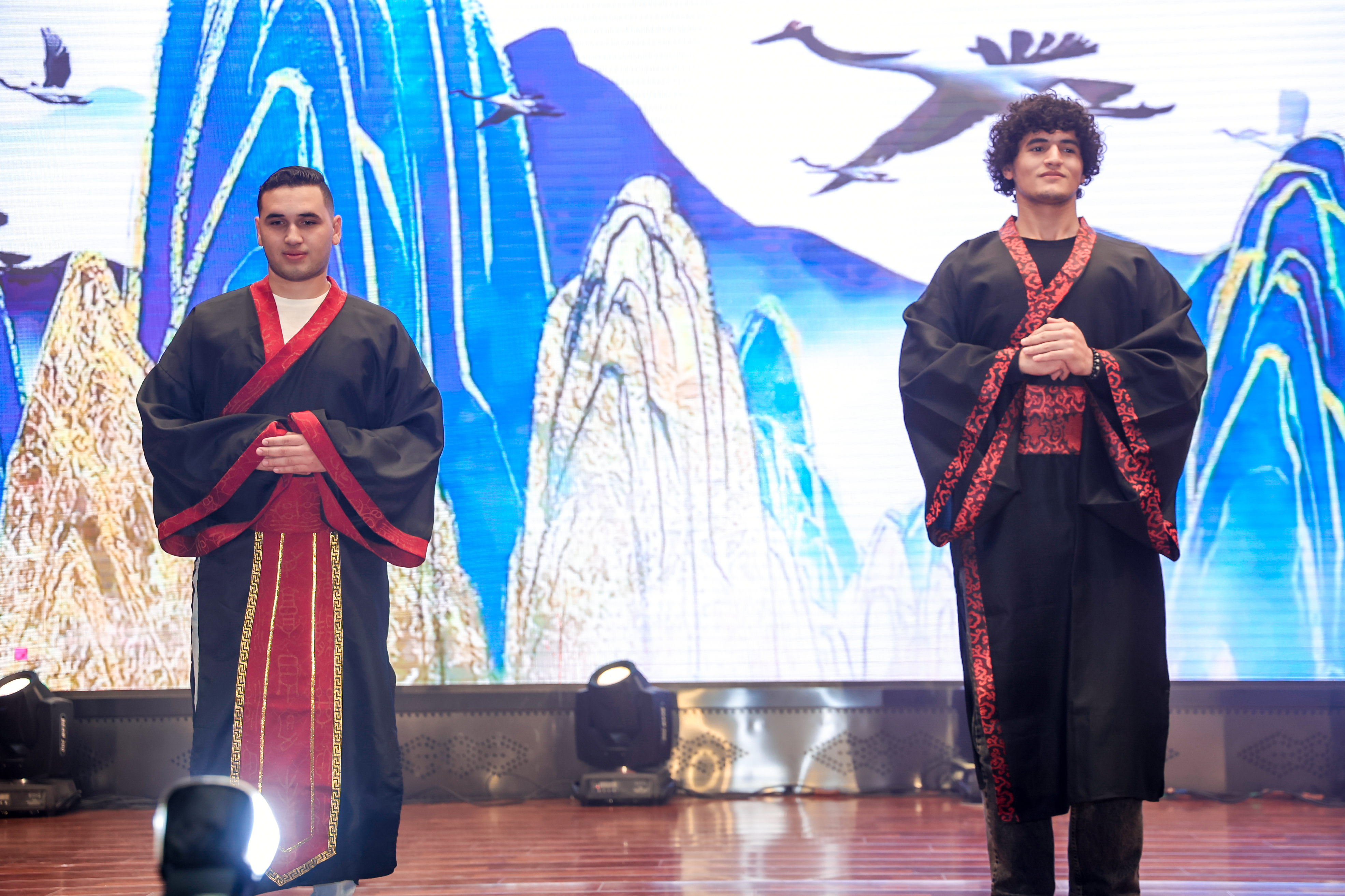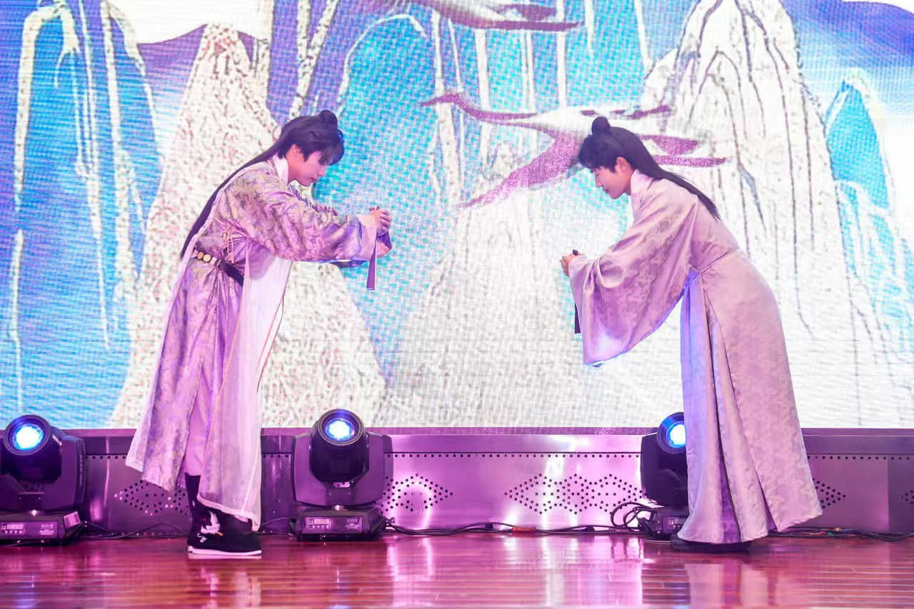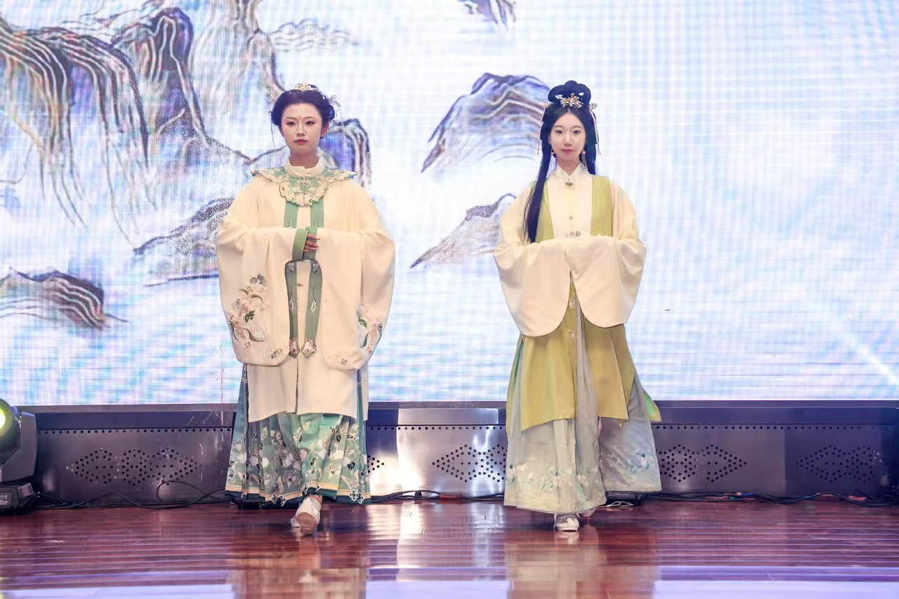 《华裳雅韵 汉服新章》汉服走秀,轻工学院服装设计与工艺专业师生与鲁班工坊外国留学生们共同携手,从秦汉时期的古朴庄重到隋唐的灿烂华丽,再到明清时期的民族融合,各种款式的汉服在舞台上争奇斗艳,仿佛一幅流动的古代画卷,将中华文化的深厚内涵得以呈现。