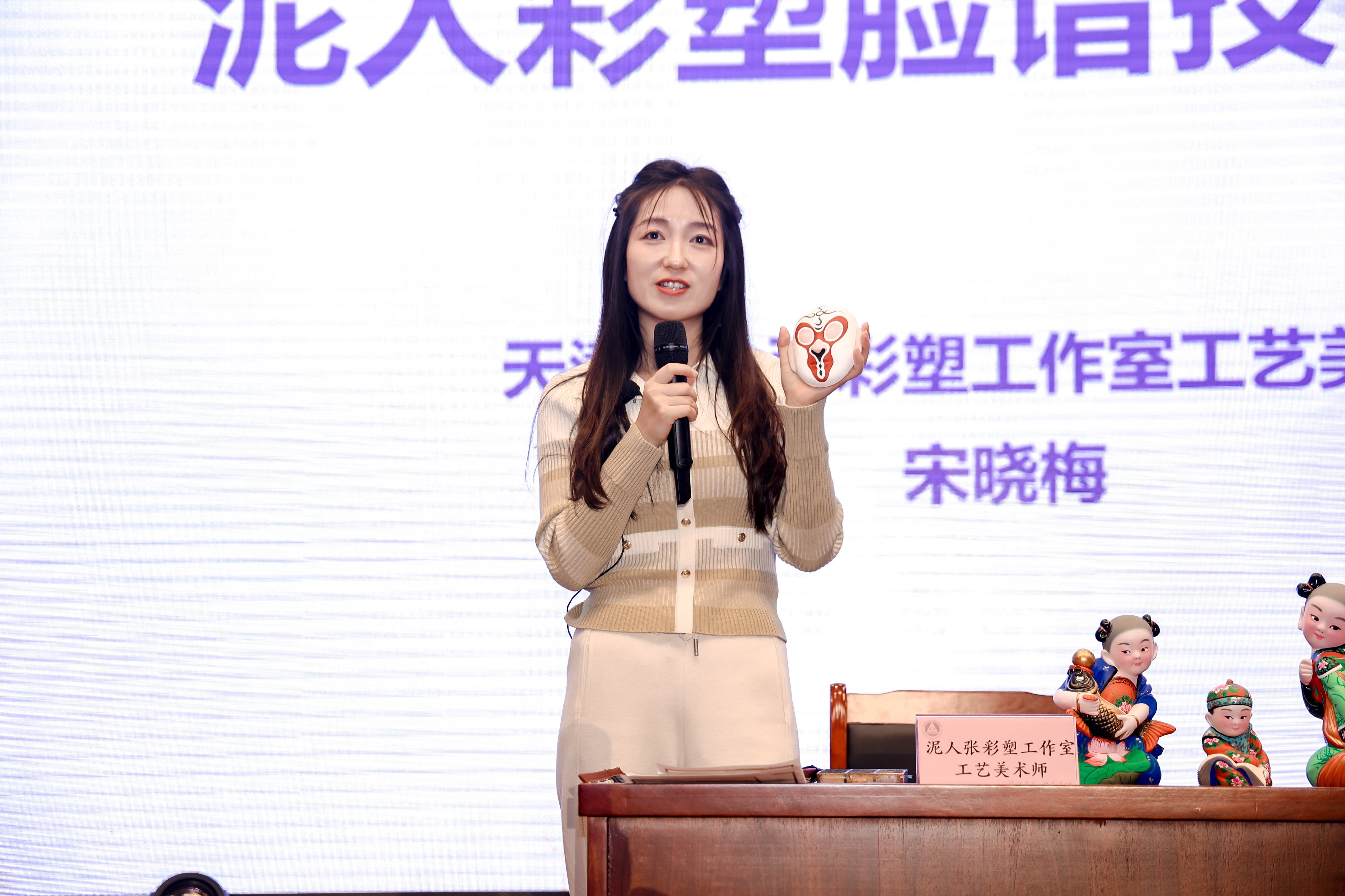 非物质文化遗产展示环节,鲁班锁传承人李浩老师和天津泥人张彩塑工作室工艺美术师宋晓梅老师向大家近距离地展现了传统技艺的独到之处。鲁班锁独特的结构和巧妙的构造,代表了古代工匠的智慧和技艺;泥人张彩塑则以其生动传神、形神兼备的特点,吸引了众多观众的目光。展示环节不仅是对非物质文化遗产的展示和呈现,更是对其的宣传和普及,激发了观众对非物质文化遗产的热爱和传承之心。