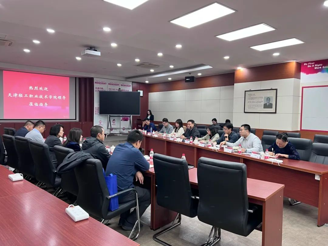 为深入学习贯彻党的二十大精神,切实落实访企拓岗促就业,促进校企合作深度融合,在发展新质生产力上善作善成,10月24日由学院党委副书记、院长李云梅带队,校企合作与培训部、国际交流合作部、党委学生工作部、电子信息与自动化学院相关负责人一行6人赴天津乐金电子(天津)电器有限公司访企拓岗,公司总裁朴毕求、副总裁张瑗、工会主席杜国柏、人力资源总监王昱、中央空调总工程师杨智、外事科长刘玥以及天津市轻工联机电安装工程有限公司董事朴淳灿、总经理胡云亮参加此次座谈。
