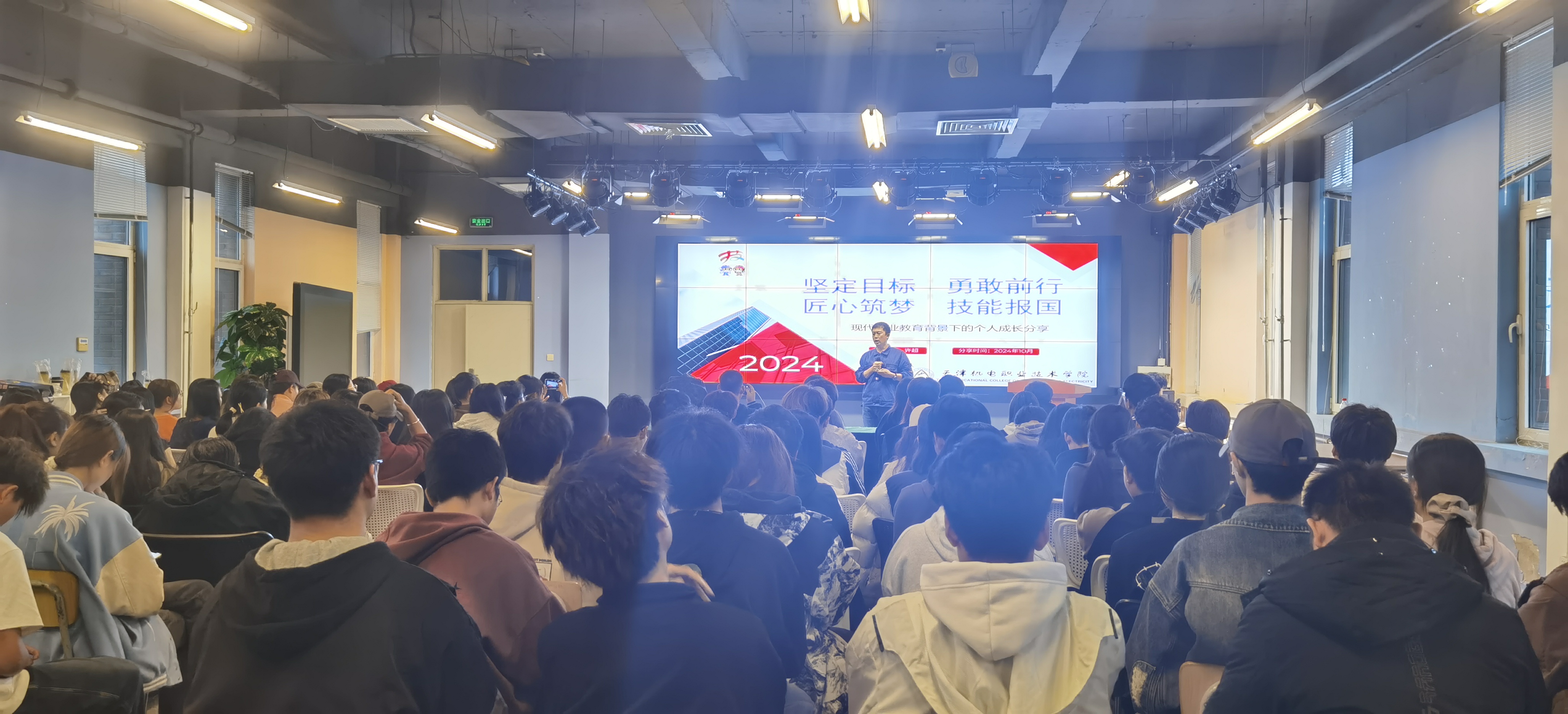许超老师以“坚定目标 勇敢前行”为题,分享了他在现代职业教育背景下的个人成长经历,为在校师生代表带来了一场生动的宣讲会。我们在聆听时深深地感受到了他的命运是因大赛而改变,同时,他为了报答母校,为了看到更多的学生能有像他一样的人生改变和转折,许超老师用自己奋斗的经历激励着我们,希望同学们也能用技术和双手创造出自己的未来。十年如一日,他用心地承担起职业教育的使命,用他的一言一行激励着每一位学子,让每一位怀揣匠心的学子都能实现自己的理想,在踏实的前进路上把握每一次机遇,成为为祖国发展助力的高技能人才。