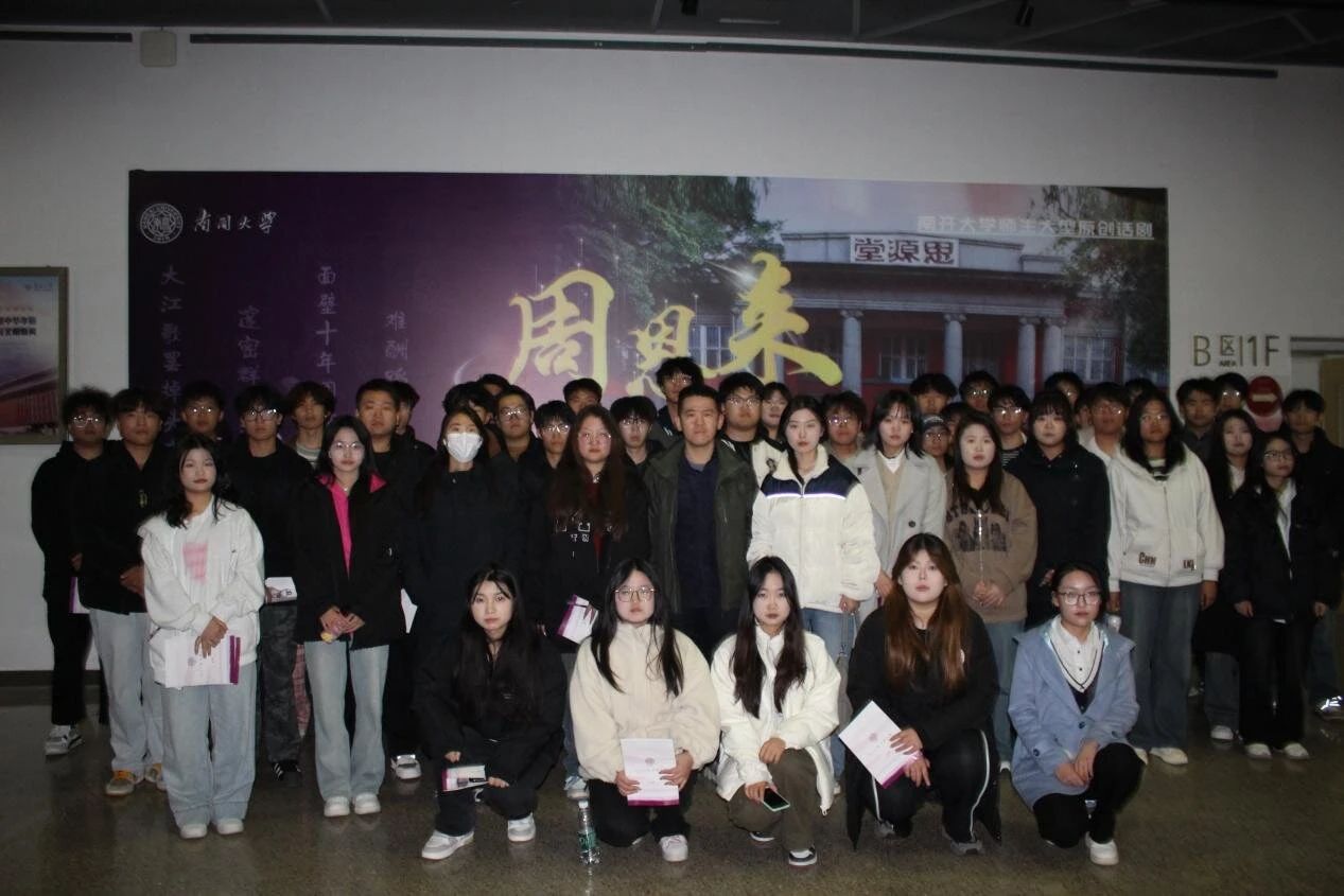 为深入学习贯彻习近平总书记视察天津和视察南开大学重要讲话精神,贯彻落实习近平总书记关于加强高校思想政治工作的重要指示批示精神,纪念周恩来总理1959年第三次来津视察南开大学65周年,2024年11月8日,新利18平台组织师生代表前往南开大学津南校区观看原创话剧《周恩来回南开》。