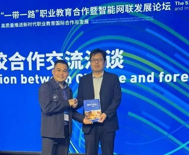 我院在会议期间积极与国内外同行交流,特别是与安哥拉万博职业技能培训中心、菲律宾技术教育技能发展局等单位建立了联系。赵慧老师将学院自主研发的新能源、数控维修及数控加工专业的双语教材赠予上述机构,这一举措有望推动这些教材成为国际化课程的一部分,进一步扩大我校职业教育国际化的影响范围。