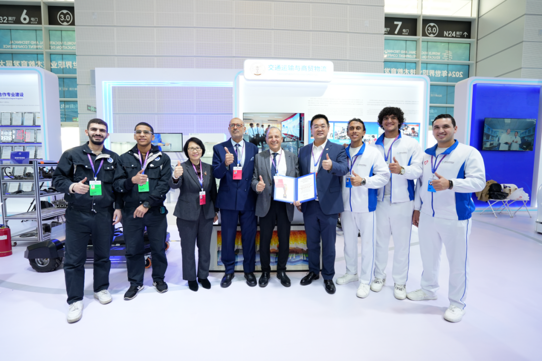日前,2024年世界职业技术教育发展大会在天津召开,1200余位国内外代表出席本次大会,其中包括来自全球100多个国家和地区的600余名境外嘉宾,覆盖政府官员、驻华使节、国际组织和院校代表等。埃及鲁班工坊代表团——埃及艾因夏姆斯大学工程学院副院长艾哈迈德·埃尔萨巴赫,埃及开罗高级维修技术学校校长哈立德·雷伊德·塔维基·哈桑宁受邀参加了此次盛会。