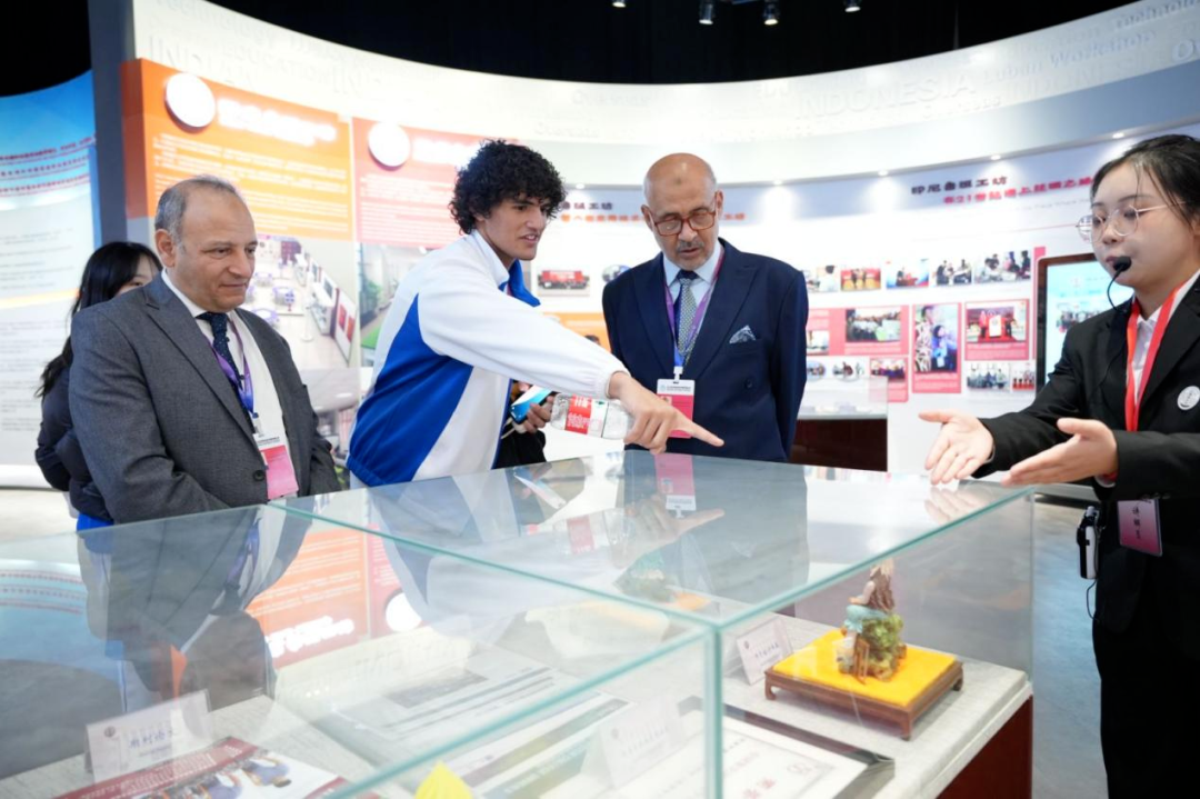 大会闭幕式后,艾哈迈德·艾尔萨巴赫副院长、哈立德·雷伊德·塔维基·哈桑宁校长与我校埃及留学生一同参观了2024年世界职教大会专题展。鲁班工坊作为中国职业教育的国际品牌,展示了中国在职业教育领域的创新成果和先进技术。代表团对鲁班工坊的展览内容表示高度赞赏,认为这充分体现了中国职业教育的活力与实力。