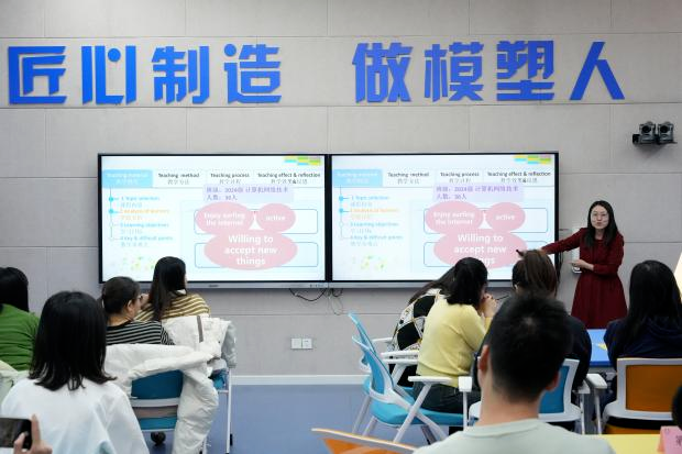 为贯彻落实《关于全面深化新时代教师队伍建设改革的意见》《关于推动现代职业教育高质量发展的意见》《关于深化现代职业教育体系建设改革的意见》等文件精神,在教学中积极融入先进的教育理念与教育方法,提升教育质量与人才培养水平,推动“金师资”高质量发展,学院于12月6日下午举行了2024年中英SCL教改示范项目第一期培训成果展示会暨结业典礼,教育部“国培计划”专家库首批专家余新,学院副院长刘悦凌,英国教育与教学质量控制协会(AQCET)中国区首席执行官洪颖颖出席了典礼,教务部,各二级学院院长、教学副院长,SCL项目参训学员及学院新入职教师共计70余人参加了此次结业典礼,会议由教务部副部长马绪鹏主持。