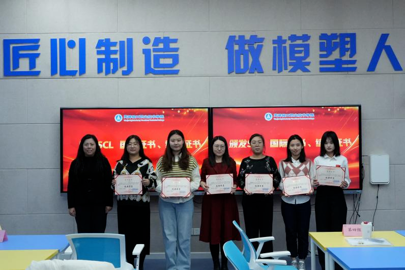 学院副院长刘悦凌,各二级学院院长,教务部副部长分别为1-6组参训学员颁发SCL国际证书及结业证书