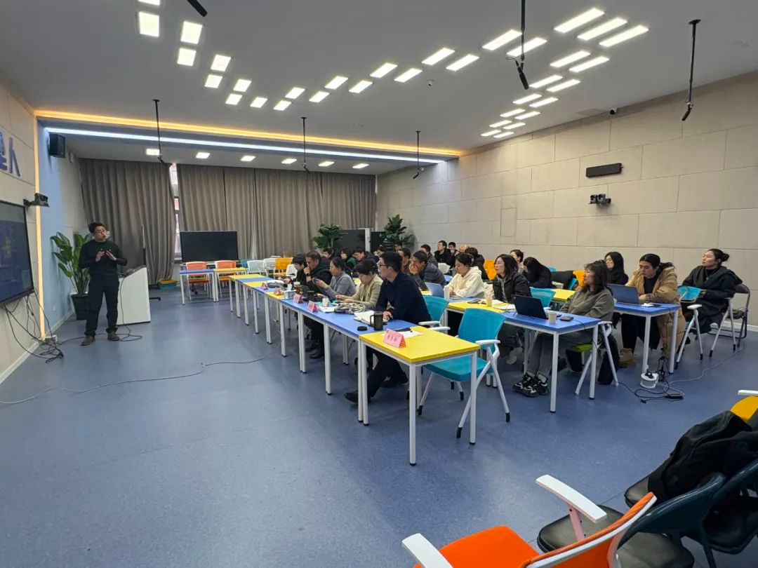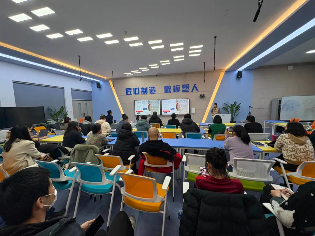 研讨会围绕图谱的内涵与价值、构建路径、技术支持与资源整合等关键问题进行深入交流。超星职业教育研究院副院长钱会博指出,图谱是人才培养可视化的展示,应贯穿于人才培养全过程,图谱建设应以产业需求链为源头,通过职业能力分析,依托数智化教学平台分层构建产业、专业、课程等图谱,利用能力图谱大数据支撑专业(群)建设和精准化教学。智慧树网络教育科技有限公司刘宸祎通过国家级专业教学资源库、在线精品课等典型案例分享能力图谱构建路径及AI产业岗位能力模型创建流程,并与我院教师一同探讨学生个性化学习路径的应用。
