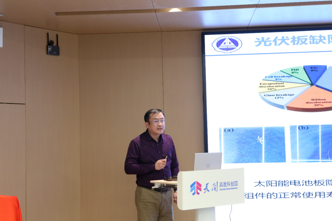 在报告环节中,丁玮博士作为联合科研团队的代表,根据企业的技术痛点,做了相关解决方案的研究报告,并与用户研讨了中试条件、项目运营等方面的问题,推动了新能源装备检测实训室科技转化和社会服务工作的进行。