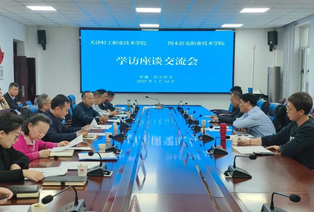 在学访交流会上,图木舒克职业技术学院党委书记肖轩广就建校历史、专业划分、院校特色、远景规划以及近2年取得的突出成绩等情况进行详细介绍;学院副院长郑文柱在交流会上就轻工学院的发展历程、办学定位、特色亮点以及2024年办成的大事进行了分享,尤其是对轻工学院发展4.0版的规划进行了交流。图木舒克市教育局局长、二级巡视员刘玉成表示,感谢轻工学院的师生为图职院传经诵宝,好朋友要常联系,希望轻工职院的师生多宣传新疆的好政策,为图木舒克的聚人兴业奠定基础。会上还就世界职业技能大赛、思政教育教学开展深入交流,双方将秉承《对口支援合作意向书》中“对口支援、互相学习、紧密合作、共同提高”原则,在教育教学资源、人才培养、专业规划、基地建设等方面互联互通、互学互鉴。