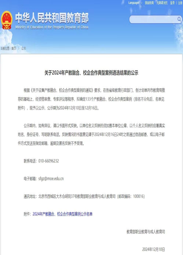 全国新能源行业产教融合共同体案例获批教育部2024年产教融合、校企合作典型案例