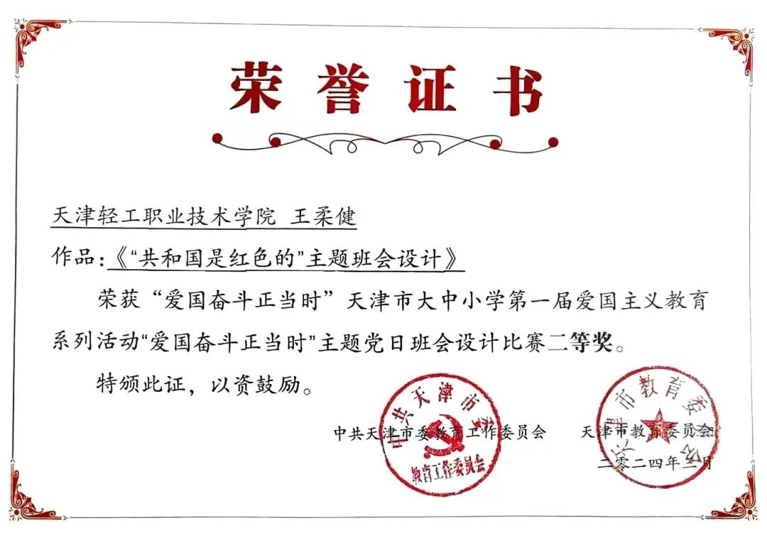 我院辅导员获得天津市大中小学主题党日班会设计比赛二等奖