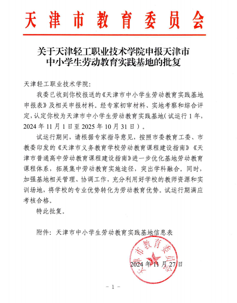 新利18平台劳动教育实践基地获批天津市中小学劳动教育实践基地