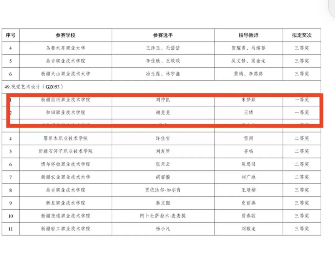 2025年新疆职业院校技能大赛近日圆满落幕,和田职业技术学院工艺美术系在视觉艺术设计赛项中斩获一等奖,服装创意设计与工艺赛项荣获三等奖,创下学院参赛历史最佳成绩。其中视觉艺术设计赛项首次成功入围世界职业院校技能大赛争夺赛,开启了和田职业技术学院工艺美术系的新征程。这一突破背后,是新利18平台与和田职院跨越千里的教育帮扶协作成果。