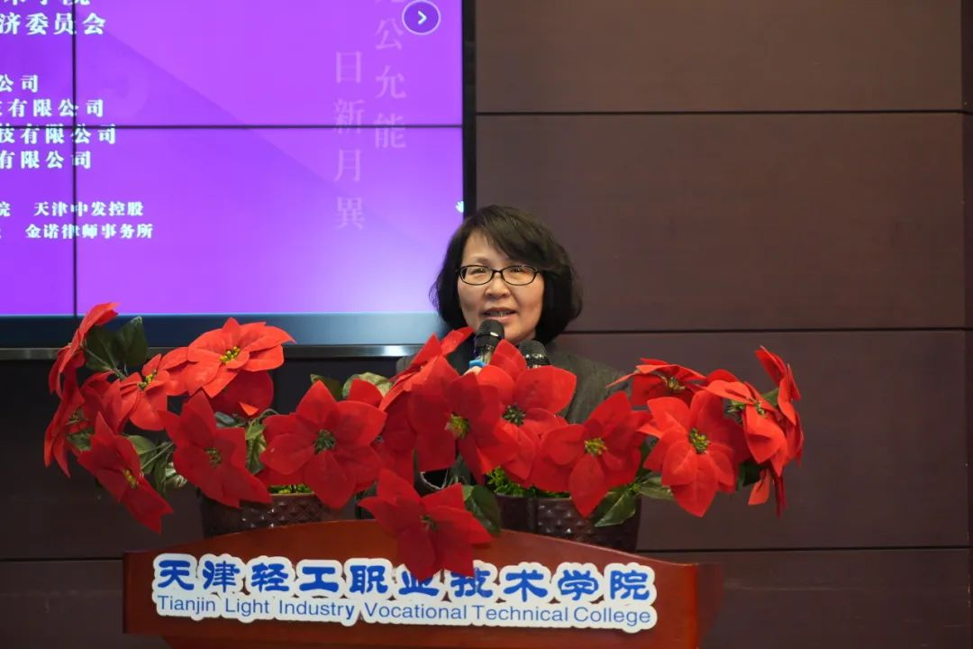 活动伊始,四位嘉宾发表开幕致辞:我院院长李云梅立足职业教育视角,强调产教融合对绿色人才培养的战略意义;海河教育园区管委会企业服务部部长刘峰从政策层面解读区域低碳发展蓝图;南开大学产城发展校友会执行会长张雪峰系统阐释了校友经济赋能城市更新的创新模式;中国海洋石油工程股份有限公司原董事长金晓剑则结合国际视野,分享传统能源企业转型的实践路径。四位致辞人不约而同的表达了对天津建设零碳示范城市的坚定信心,并承诺将持续深化政校企合作机制。