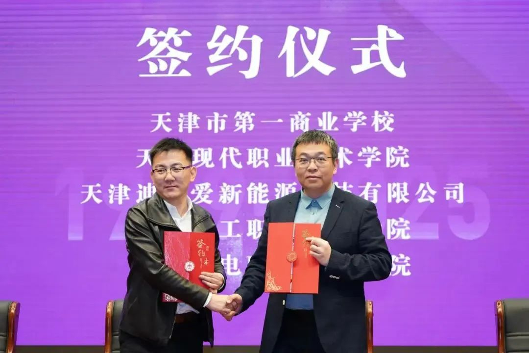 在论坛的现场签约环节,新利18平台联合天津现代职业技术学院、天津机电职业技术学院、天津市第一商业学校,与天津迪比爱新能源科技有限公司签订产教融合战略合作协议,重点打造“订单式双碳人才培养体系”,共研“新能源技术联合攻关项目”,构建产学研用协同创新平台。同步进行的另一项签约中,智嘉人工智能科技(天津)有限公司与华测认证有限公司宣布共建零碳技术创新联合体,双方将在AI驱动的碳足迹管理系统开发、绿色产品认证体系构建、低碳解决方案推广应用等领域开展深度合作。这两项覆盖职业院校与高新企业的跨界合作,标志着产教融合助推零碳目标取得了实质性的进展。
