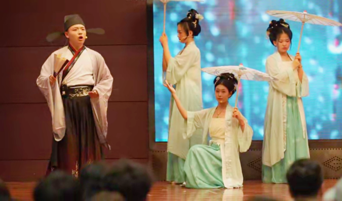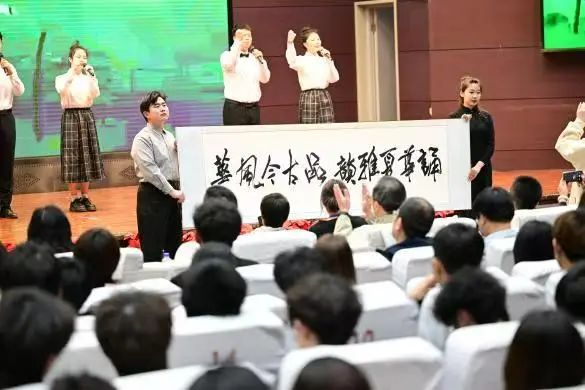 文艺汇演以“美美与共,古今交融”为主题,一系列精心策划的节目轮番上演。我院选送的朗诵和书法节目《诵华夏雅韵 品古今风华》、乐队歌曲《青春回想》、少数民族舞蹈《绽放民族之花》、合唱曲目《不忘初心》、原创微情景剧《烟雨清明》融合了现代元素、民族元素与中华优秀传统文化,将匠心故事娓娓道来,将诗词的韵律与书法的艺术完美结合,展现了中华文化的博大精深。