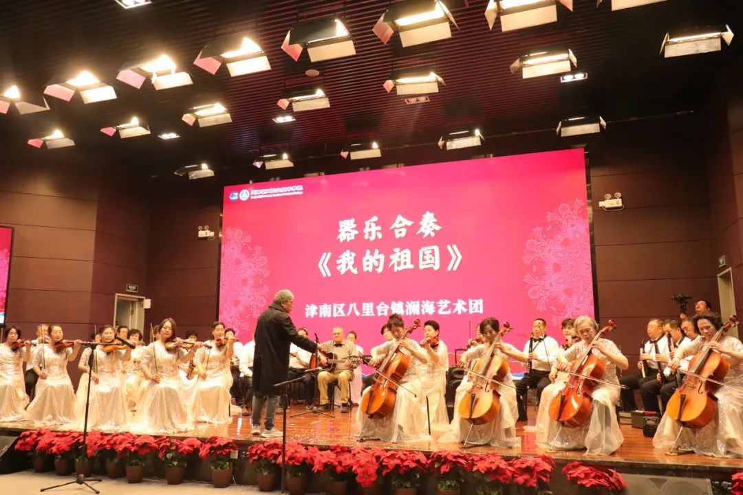 为深化落实大中小学思政一体化,我院邀请了南开学校的同学们演绎经典曲目《铁匠波尔卡》,展现音乐的独特魅力与青少年的艺术风采。津南区八里台镇澜海社区老年艺术团演奏经典曲目《我的祖国》,用音符与节拍诉说了对祖国的热爱与敬仰,激发观众的爱国情怀。