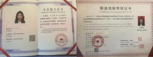 课余时间,她积极探索专业知识,加强自己的专业能力,考取会展职业经理人、会展管理等相关领域职业技能证书。