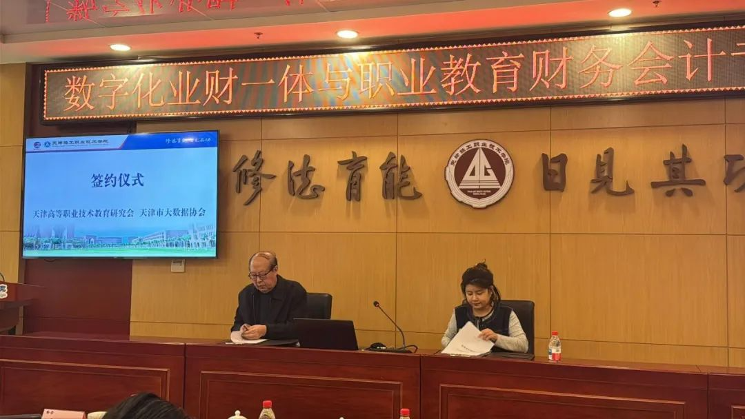会上,天津高等职业技术教育研究会与天津市大数据协会举行了签约仪式,双方将在资源共享、数据要素整合、产业提升与企业服务等方面展开深度合作,共同推动职业教育与大数据产业的融合发展,开启深度合作的新篇章。