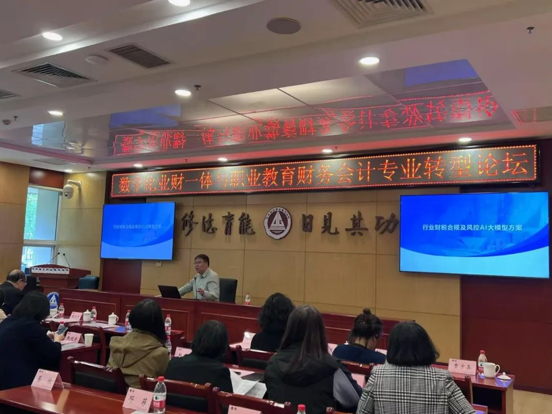 天津神州浩天科技有限公司副总经理、技术总监解延宏介绍的《行业财税合规及风控AI大模型方案》,展现了技术架构突破、教学应用场景及产教协同成果三大产教融合价值。