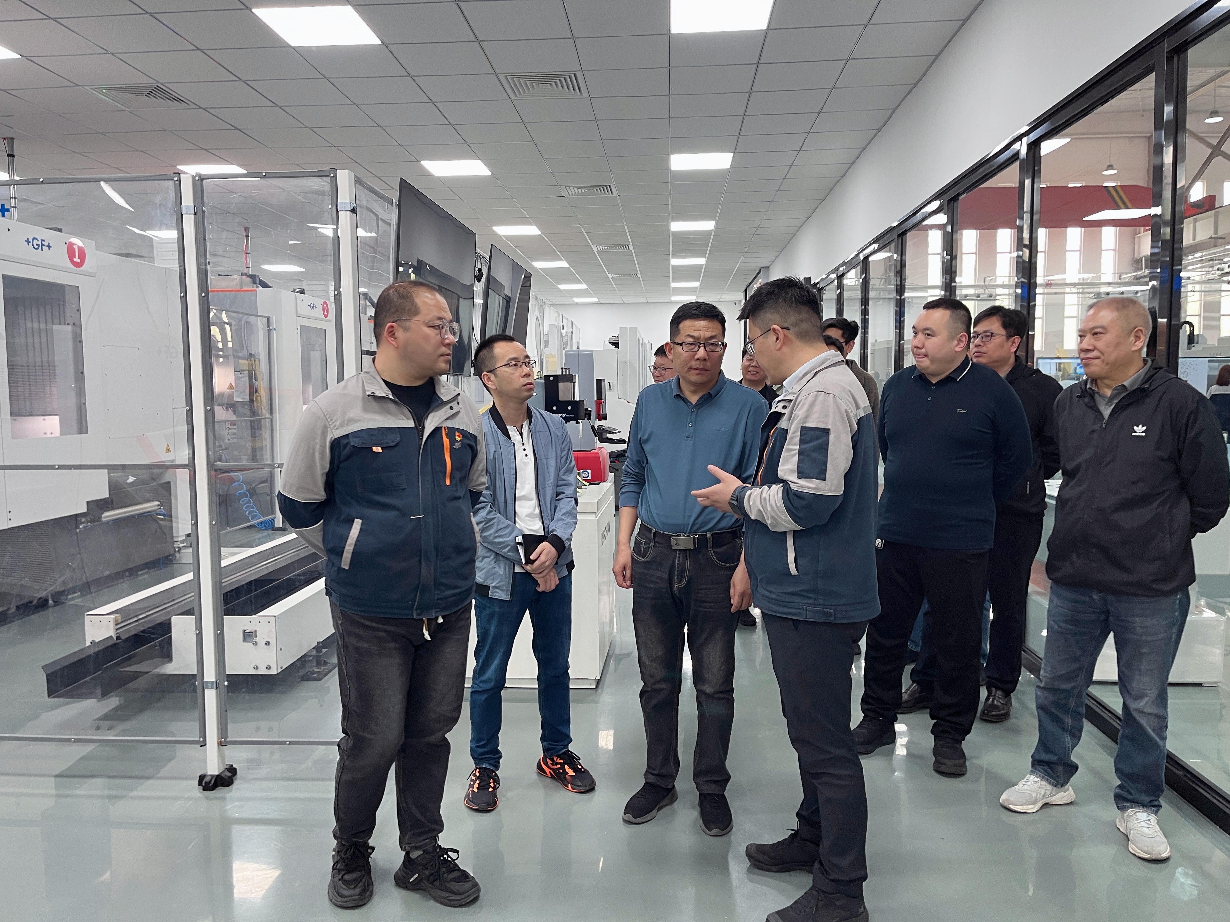 实地观摩展成果,协同创新促融合 座谈之前,机械工程学院周京副院长、国家技能大师史清卫等陪同李晓宝一行实地参观学院精密模具与智能制造产教融合基地,详细介绍了基地内的高端数控加工设备、产教融合项目成果以及师生在国家级技能大赛中斩获的荣誉。李晓宝对学院在智能制造领域的前沿探索和人才培养成效给予高度评价,并表示:“轻工学院在产教融合中的实践成果令人振奋,未来双方可在技术研发、工匠培育等领域拓展更多合作空间。”