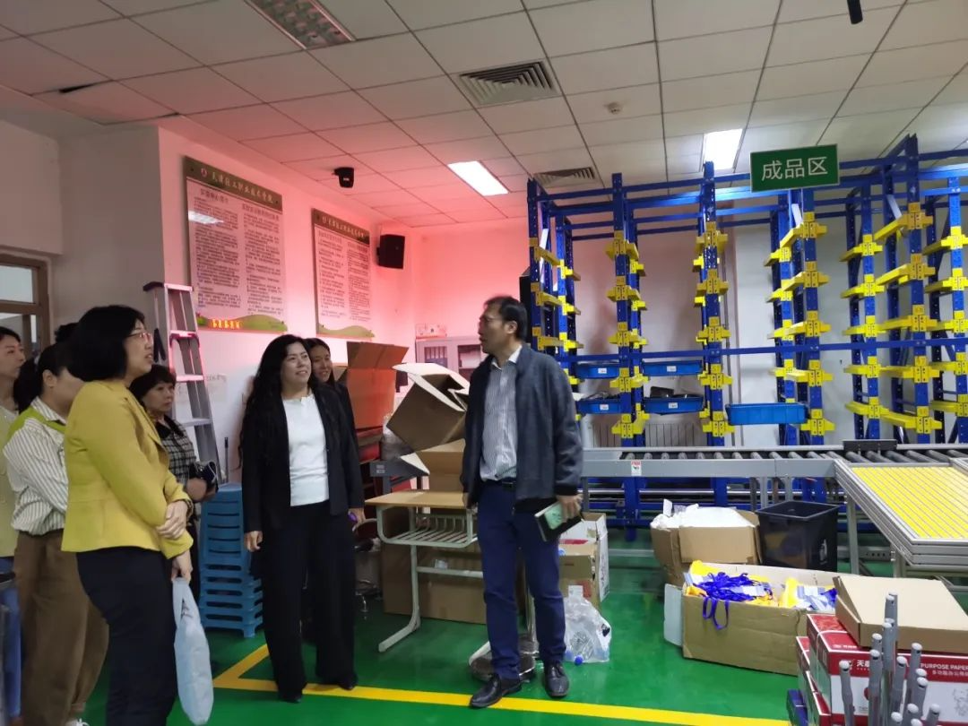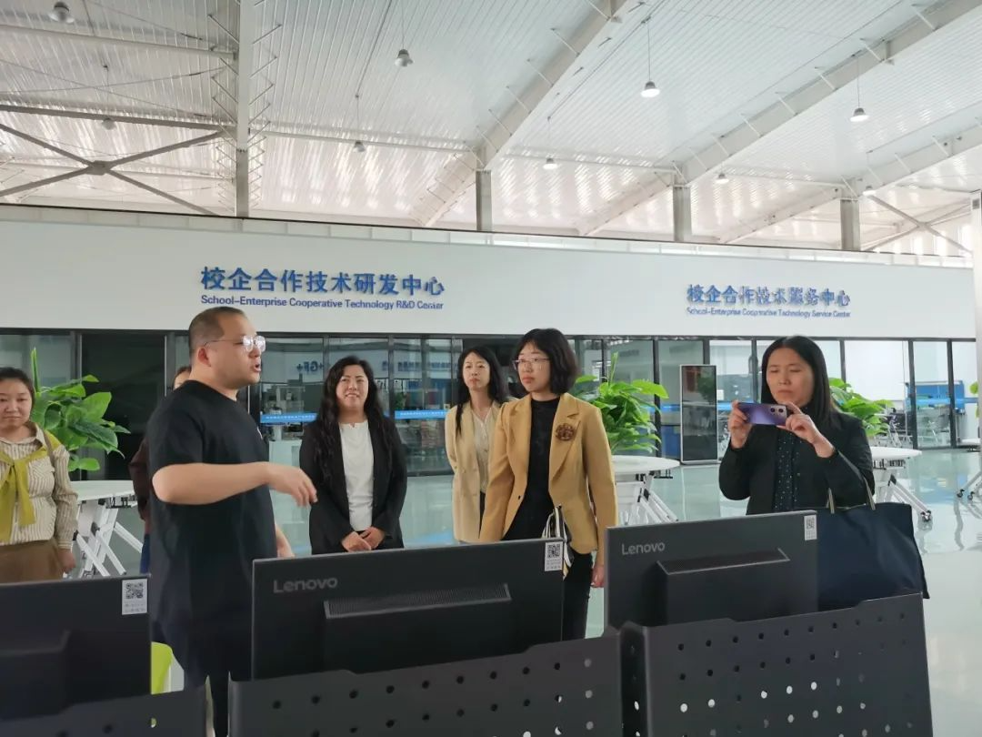 会后,一商校领导一行参观了经济管理学院和艺术工程学院实训室、服装智能制造协同创新中心、新能源技术产教融合基地、精密模具与智能制造产教融合基地及鲁班工坊建设·体验馆,详细了解了我院产教融合、实践教学、职教出海等情况。