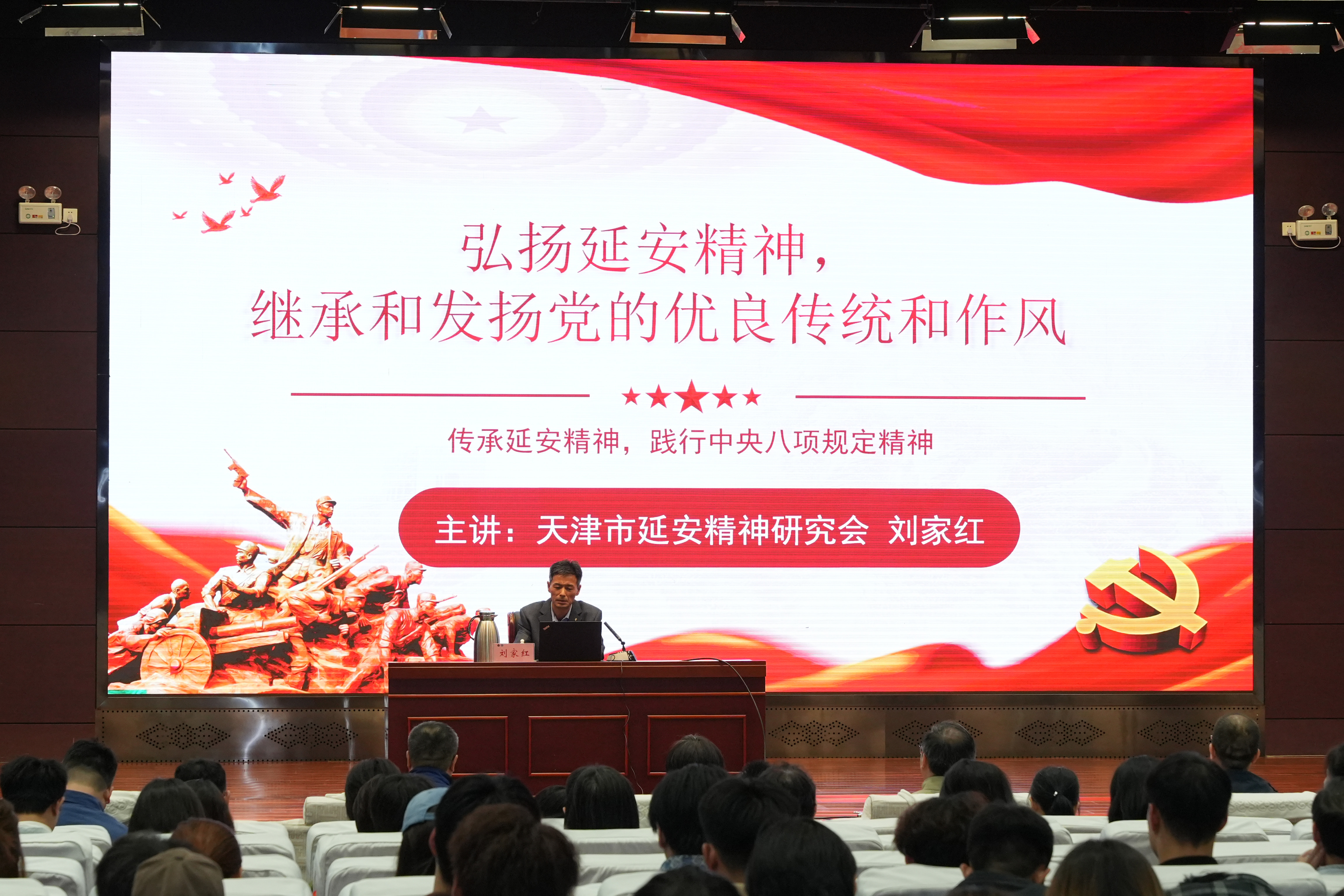 宣讲会上,刘家红作了题为“弘扬延安精神,继承和发扬党的优良传统和作风”的主题报告,立足新时代党的建设总要求,从历史纵深与现实维度展开系统论述。刘家红以延安精神形成的时代背景为切入点,结合当前全面从严治党新形势剖析延安精神的丰富内涵与现实意义,通过对比延安时期整风运动与新时代作风建设的内在逻辑,深刻阐明了抓好作风建设是中国共产党百余年奋斗的经验总结,并为如何以彻底的自我革命精神将作风建设持续引向深入提出了符合当代高校师生发展规律的方法论。