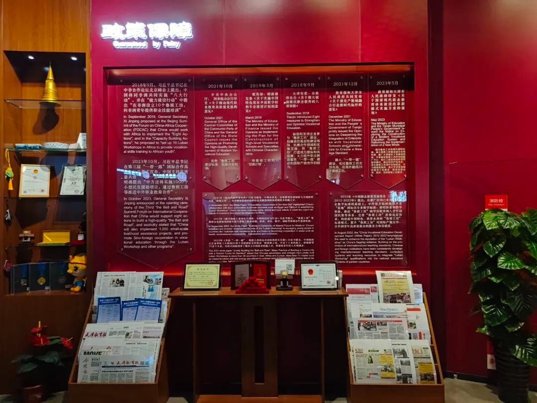 参观坐落于新利18平台的鲁班工坊建设·体验馆这一天津市外国留学生文化体验基地,了解鲁班工坊建设发展历程,体验班墨文化。
