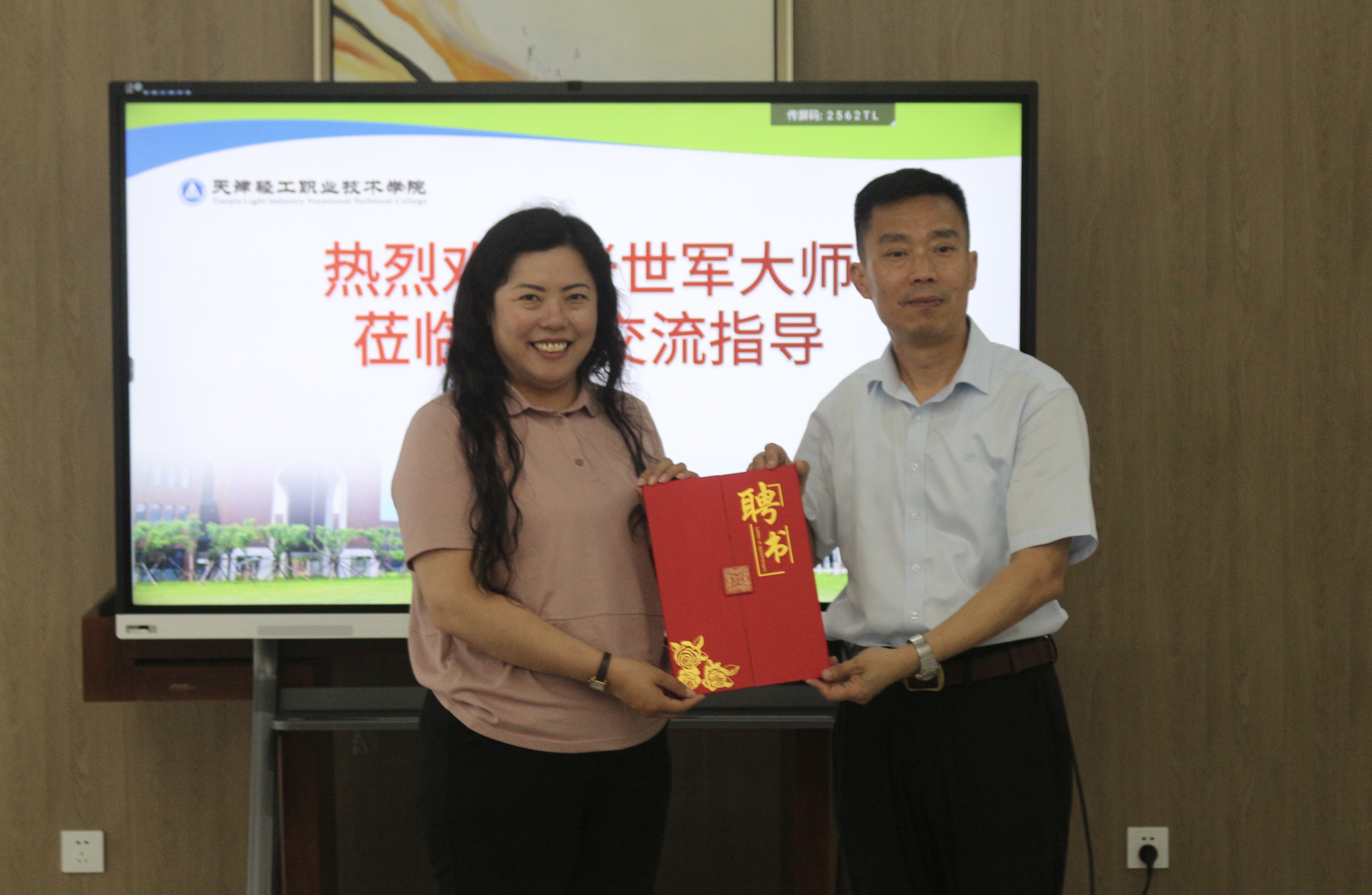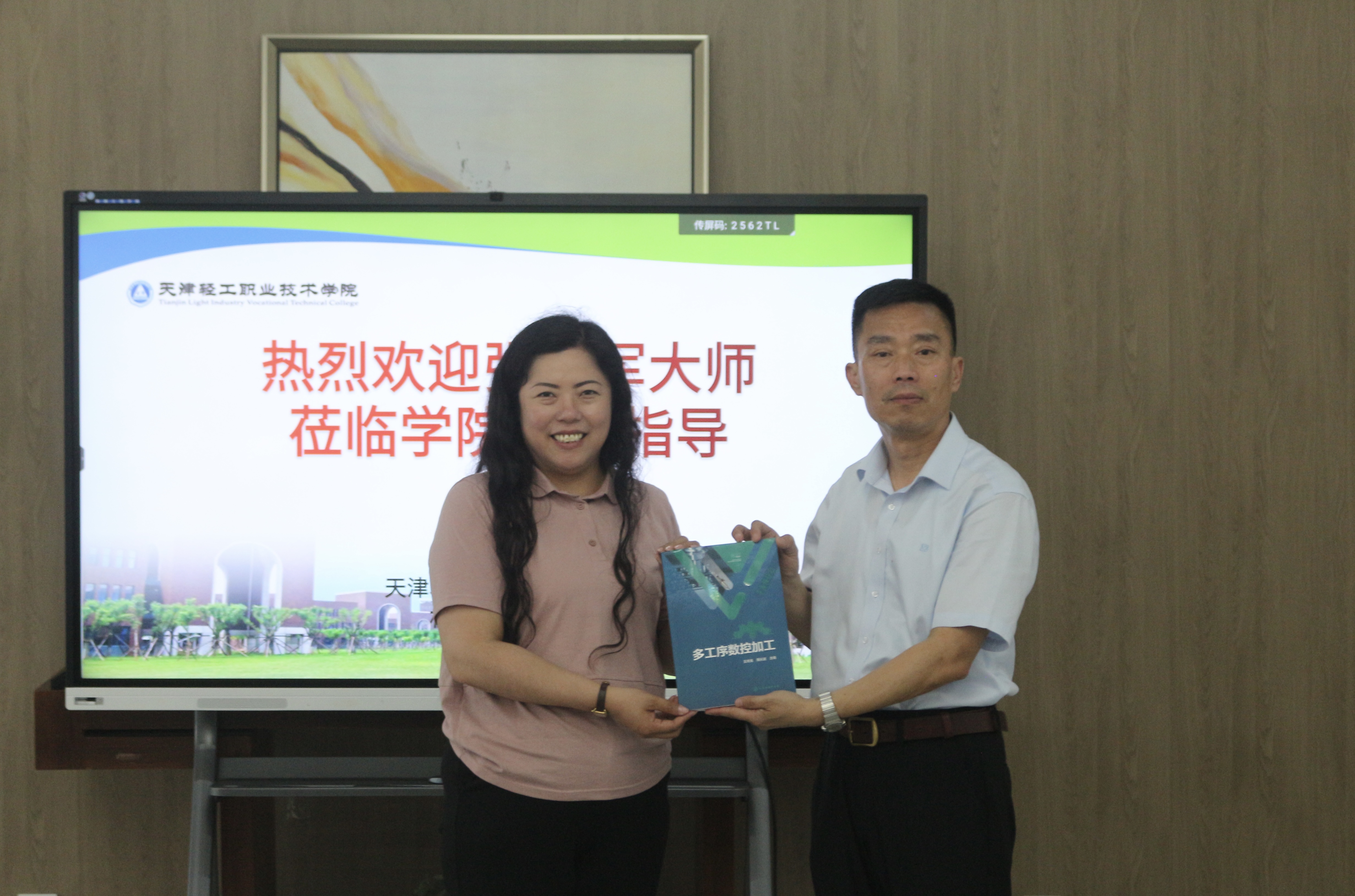 刘悦凌为张大师颁发了学院企业导师聘书,并赠送了由我院教师王传龙主编、张世军参编的《多工序数控加工》教材。