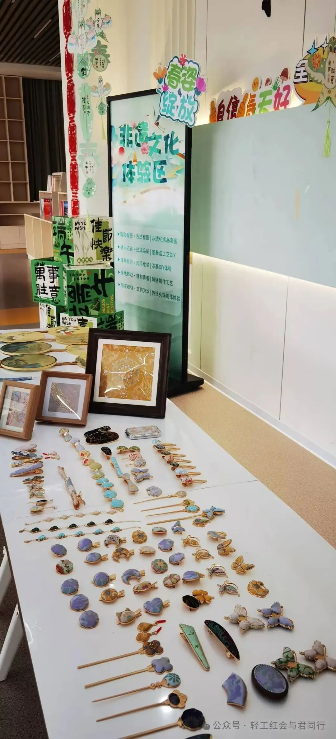 非遗技艺体验区:艺术工程学院文物修复专业学生现场演示宋锦团扇制作工艺,从选材、织造到装裱,全程展现非遗技艺的精妙;