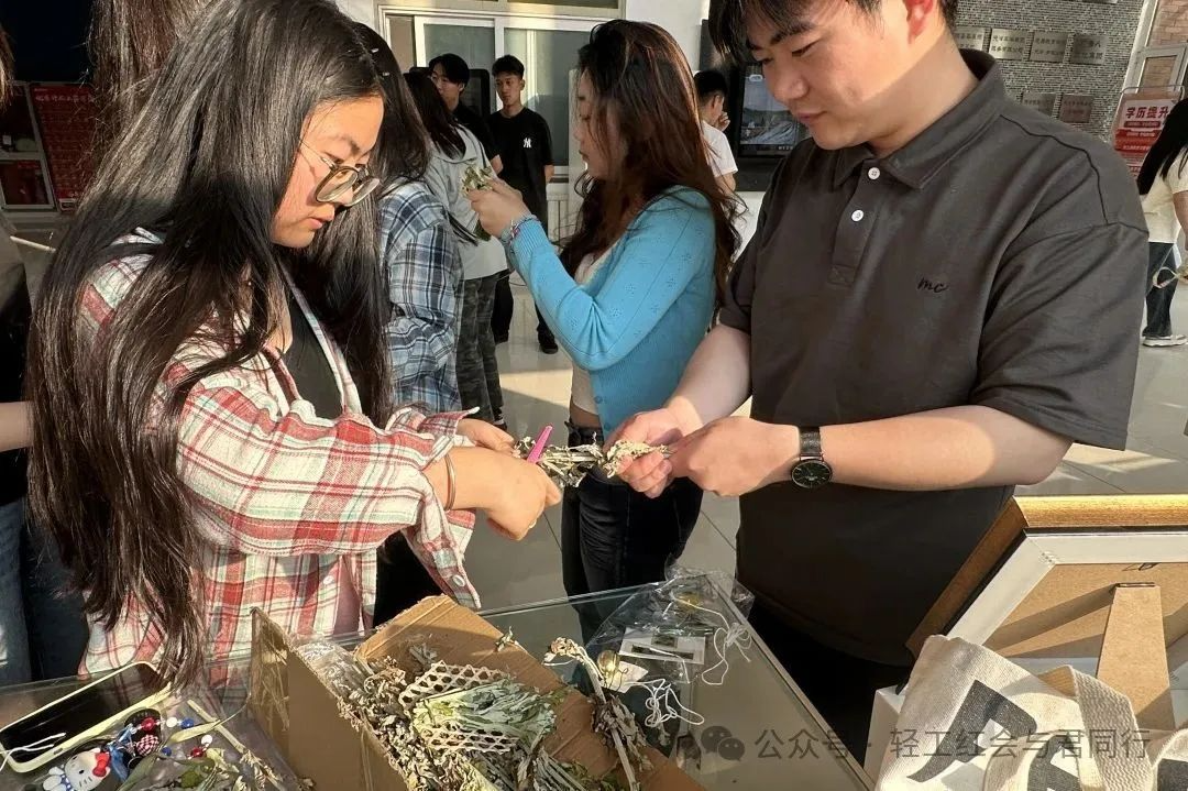 艺术工程学院将专业与传统文化深度融合。开展五彩绳编织课堂,学子以“安康如意”为主题设计手串;举办艾草花束制作活动,精选手工材料,打造兼具观赏性与文化内涵的端午礼品。