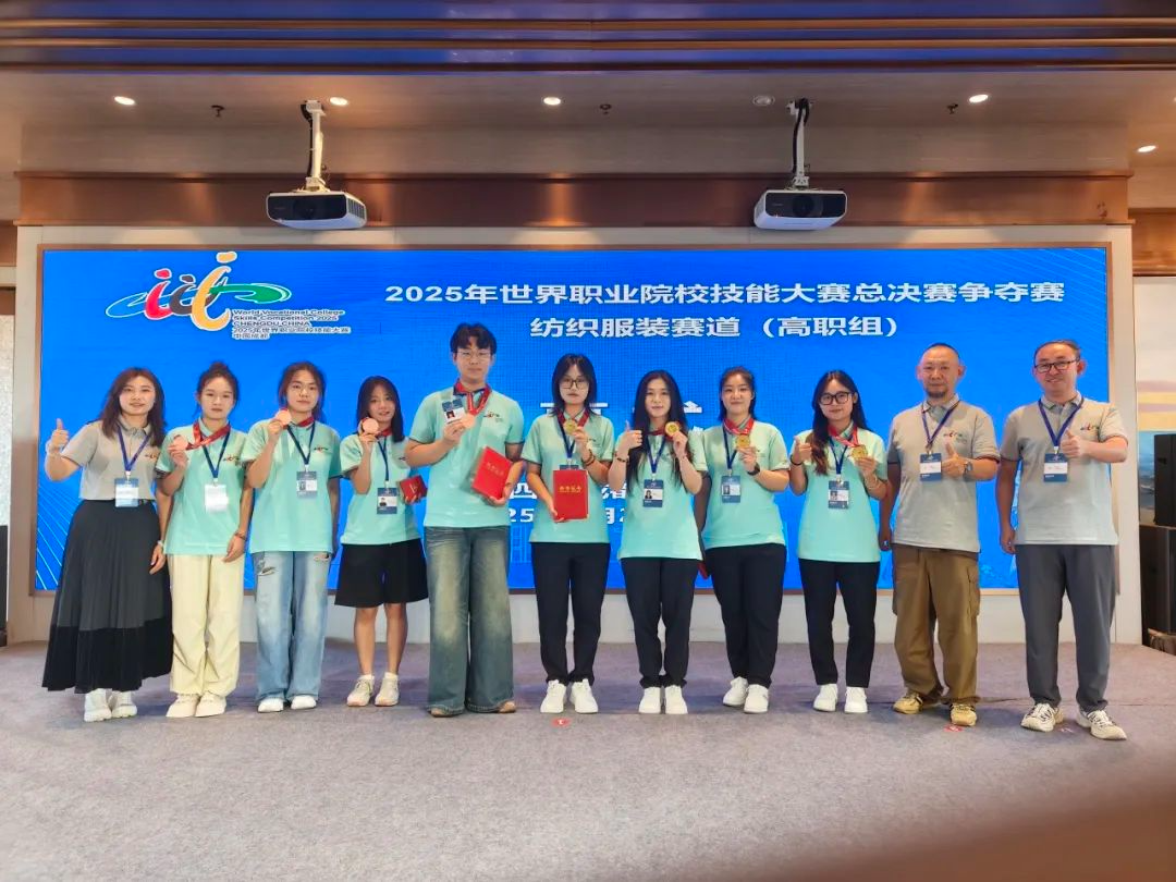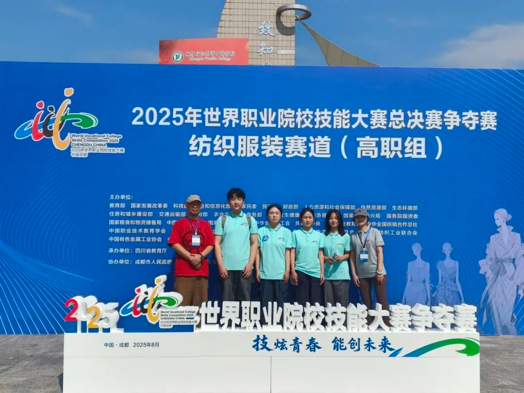 2025年世界职业院校技能大赛总决赛争夺赛纺织服装赛道(高职组)于8月18日至22日在成都纺织高等专科学校圆满收官。本次大赛吸引了全国28个省、自治区、直辖市及新疆生产建设兵团的77支代表队同台竞技。经过激烈角逐,我院在世界职业院校技能大赛上再创新高:赵志强、孙嘉庆两位教师指导的杨可芯、王心语、张宇、李森垚四位学生以专业功底为基,靠默契协作制胜,凭沉稳发挥突围,终揽“纺织服装”赛道桂冠;与此同时,张余、赵芳琳两位教师指导的王佳仪、刘桂莉、孙婧萱、王泽煊四位学生则以扎实的技能功底夺得铜奖。赛事充分彰显了产教融合的育人成效,为纺织服装行业转型升级注入新动能。