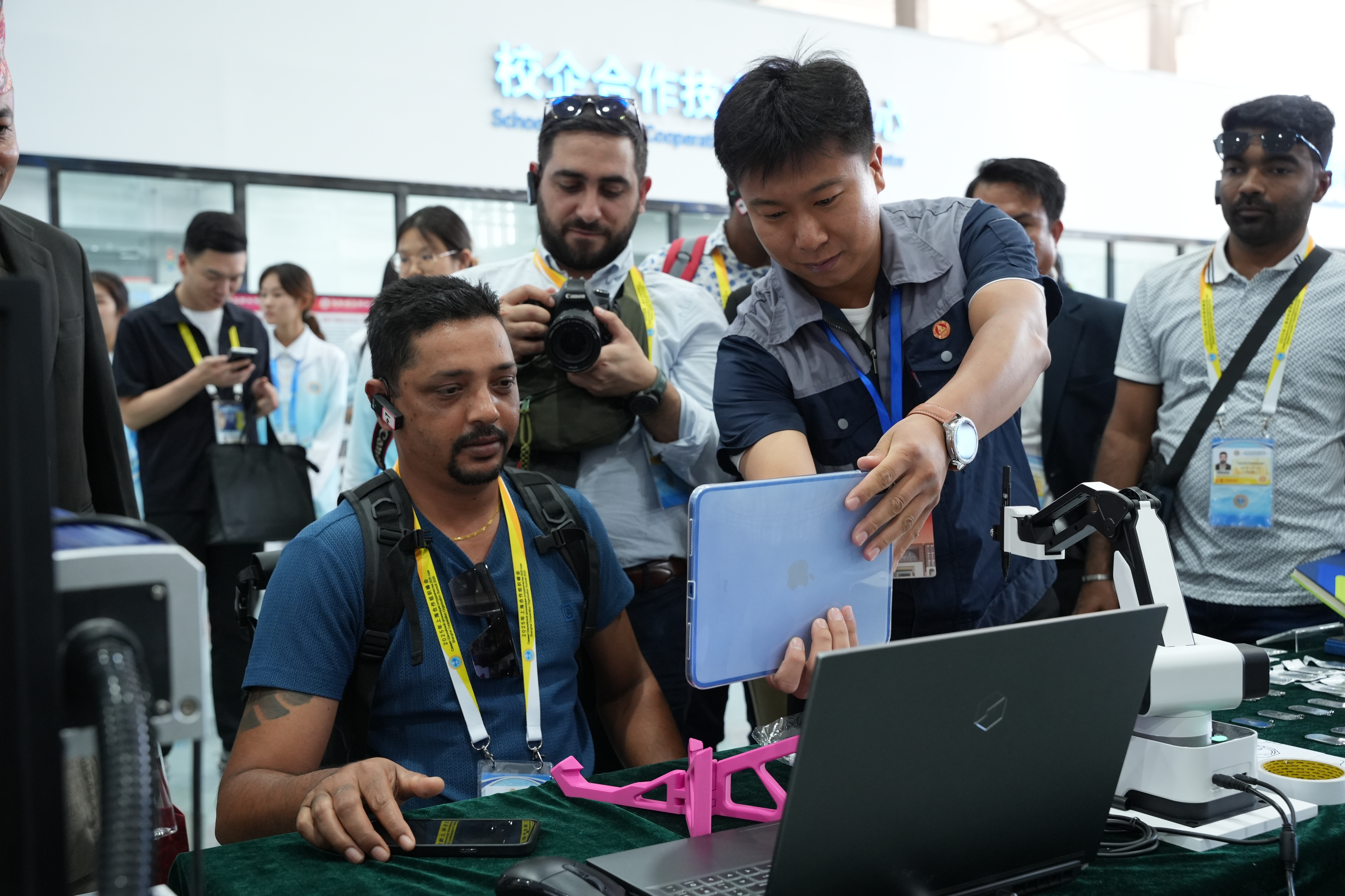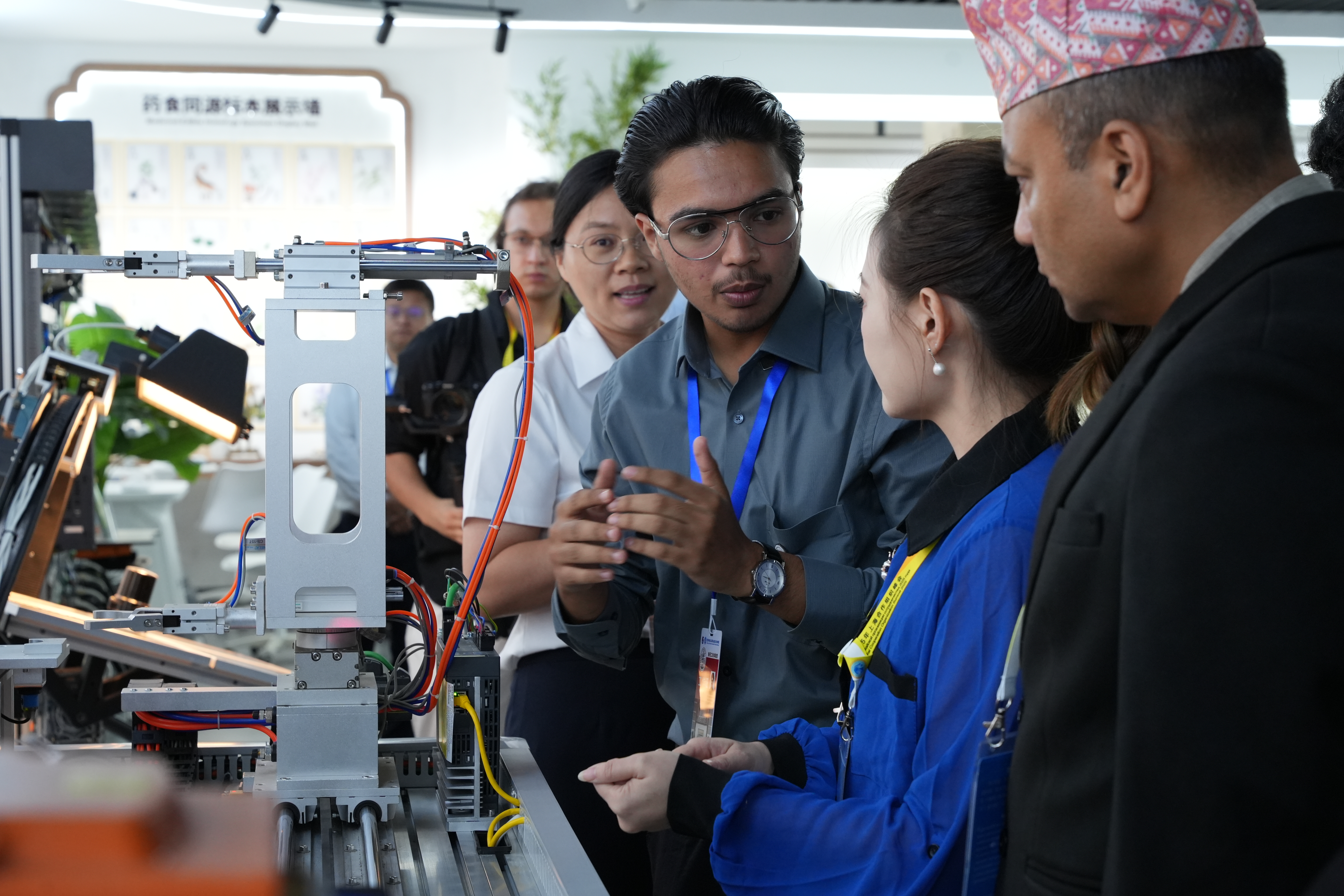 学开高铁、机器人教具、“隔空诊脉”...... 参访过程中,中外嘉宾探秘鲁班工坊“技术驿站”,不时驻足询问,在现场热情参与互动。而在精密模具与智能制造产教融合基地,来宾们则被眼前的职业教育“黑科技”所震撼:复刻大国重器核心部件的数控机床、将创意瞬间实体化的3D打印魔法、赋能多国产业的智慧教学系统......指尖触碰间,他们亲身感受到,“鲁班”之名已非遥远的传说,而是化身为联通世界的技术桥梁。
