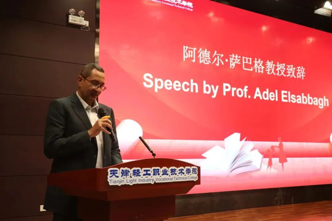 9月10日,在我院举行庆祝第41个教师节表彰大会上,同期举办2025埃及鲁班工坊大学生研习营开营仪式,为节日增添了浓厚的国际色彩与人文情怀。开营仪式上,来自埃及鲁班工坊的学生们演唱了埃及歌曲,工坊项目负责人阿德尔·萨巴格教授发表致辞,回顾了埃及鲁班工坊从蓝图构想到建成揭牌再到高质量运行的历程和丰硕成果。他特别强调,鲁班工坊不仅是中埃两国在职业教育领域合作的重要平台,更是双方深厚友谊与共同发展的生动象征。