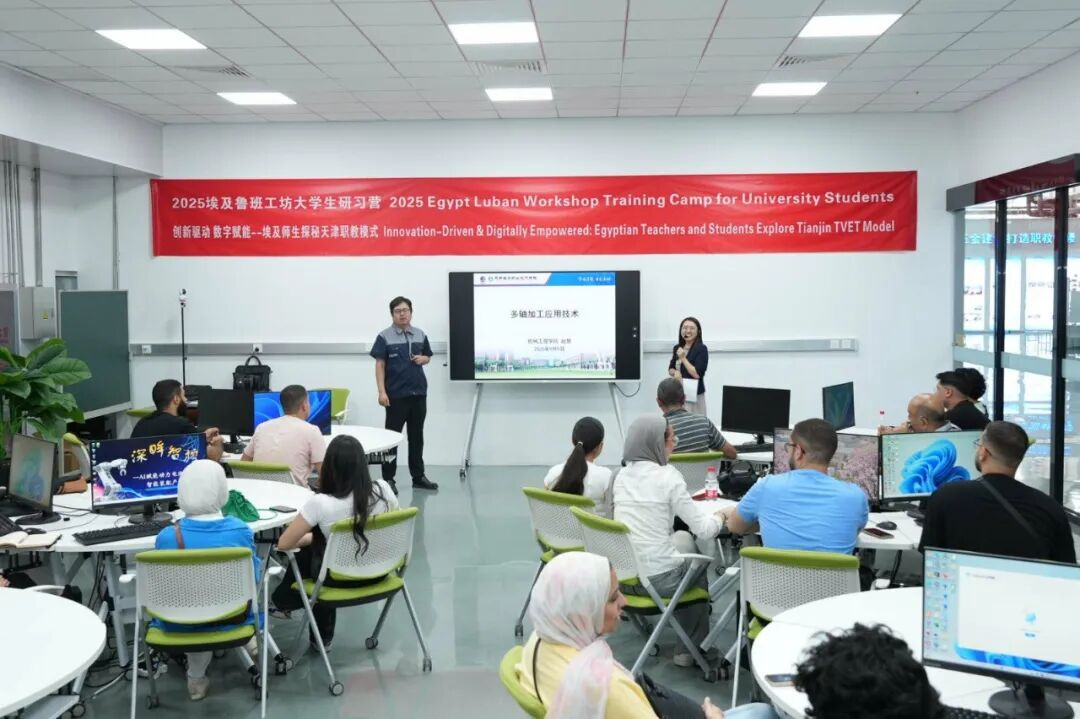 研习期间,埃及学员将系统学习数控设备应用与维护专业的技术技能,包括多轴加工、3D打印与产品设计、产品检测等实训课程;新能源应用技术专业的培训以“津埃光风电储,绿色驱动未来”为主题,涵盖光伏发电系统安装调试、光伏电站建设、储能电池原理、风力发电机组原理及能源互联网知识,助力埃及青年掌握前沿绿色技术。