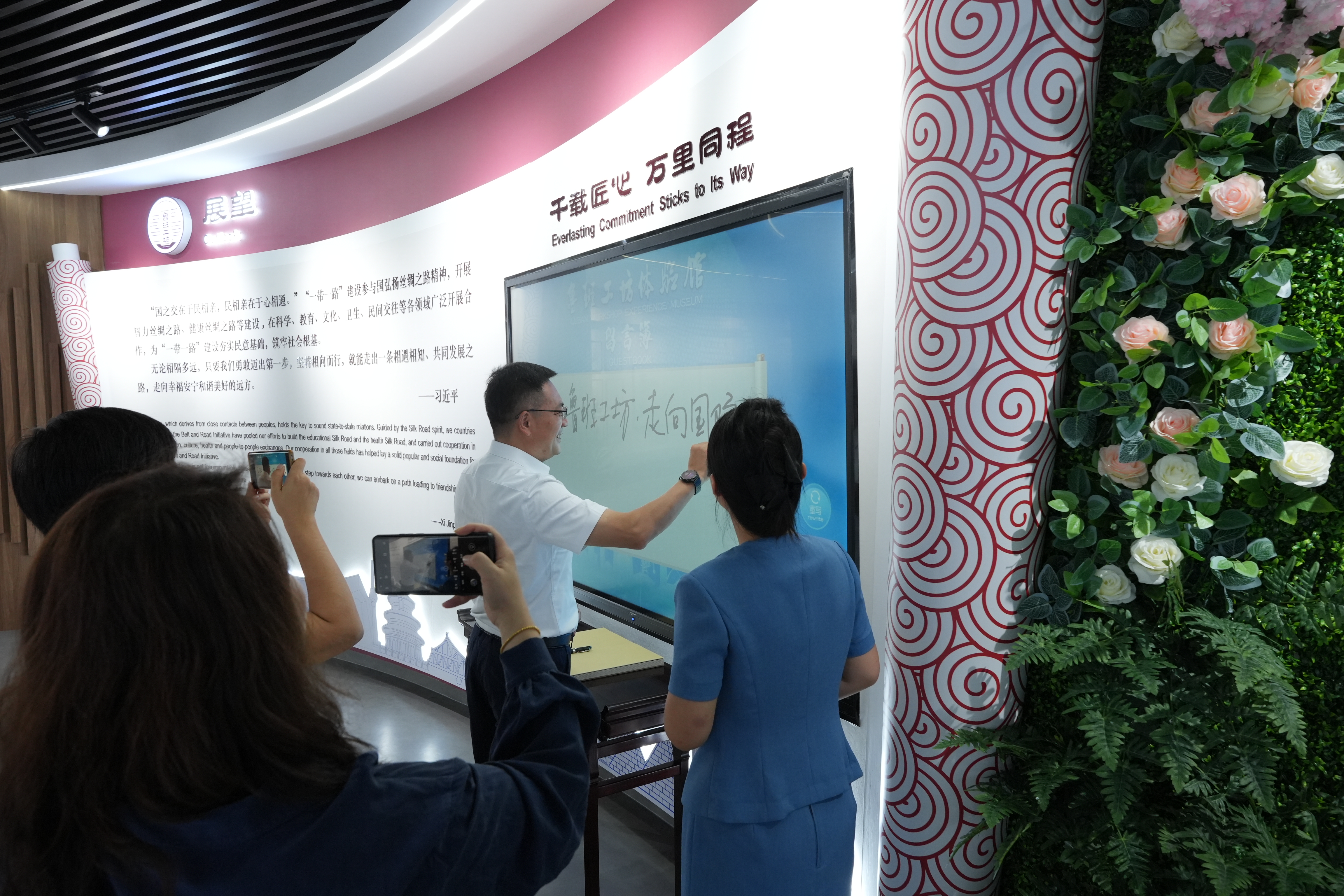 薛健一行先后参观了鲁班工坊体验馆和精密模具与智能制造产教融合基地。在鲁班工坊体验馆,听取了鲁班工坊建设缘起、核心内涵、建设历程、建设路径和运行成效等方面内容介绍,详细了解了我校牵头建设的埃及鲁班工坊等3个鲁班工坊的情况和经验做法。在精密模具与智能制造产教融合基地,详细了解了国家级和天津市级技能大师工作室、开放型区域数字化智能制造工程技术实践中心、工业机器人虚拟仿真实训室等建设情况,与国内外行业头部企业开展校企合作,协同进行课程开发、人才培养、项目合作等情况。参观结束后,双方围绕鲁班工坊建设、国际交流、产教融合、人才培养等内容开展了交流。
