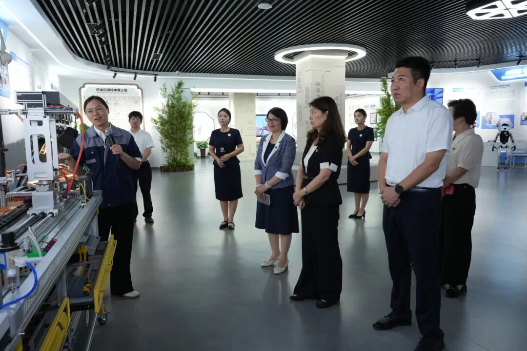 随后,卢焱部长一行参观了鲁班工坊体验馆、精密模具与智能制造产教融合基地和新能源产教融合实践基地。此次考察调研,进一步搭建起政、地、校协同创新的桥梁,为学院发展注入了强劲动力。学院将以更加务实的作风践行育人使命,为津南区域经济高质量发展贡献轻工力量。