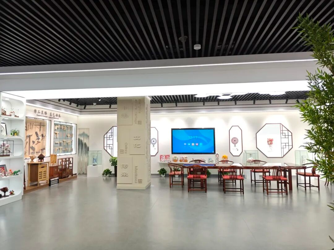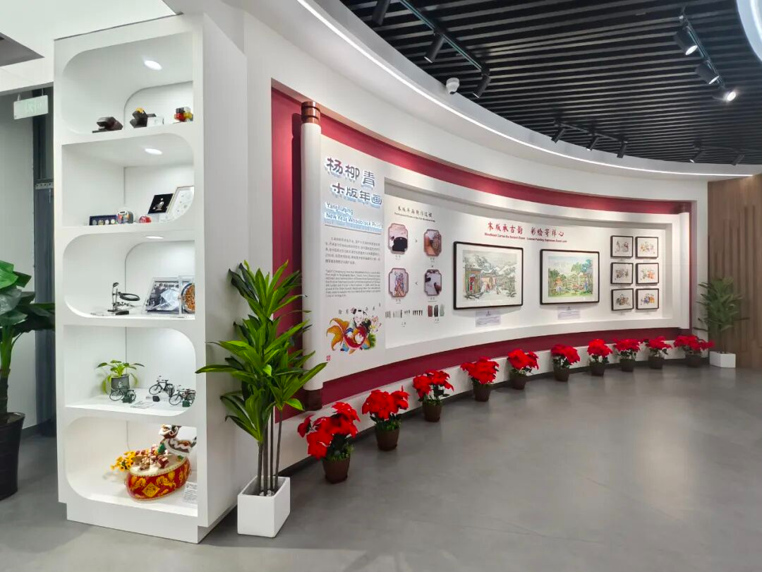 展览展示设计组负责非遗文创展区设计,整合7项非物质文化遗产,打造集展示、体验、教育于一体的文化空间。艺术工程学院设计团队在刘建伟院长带领下,春节期间反复修改方案二十余次,最终呈现出传统与现代融合的“新中式”风格空间。